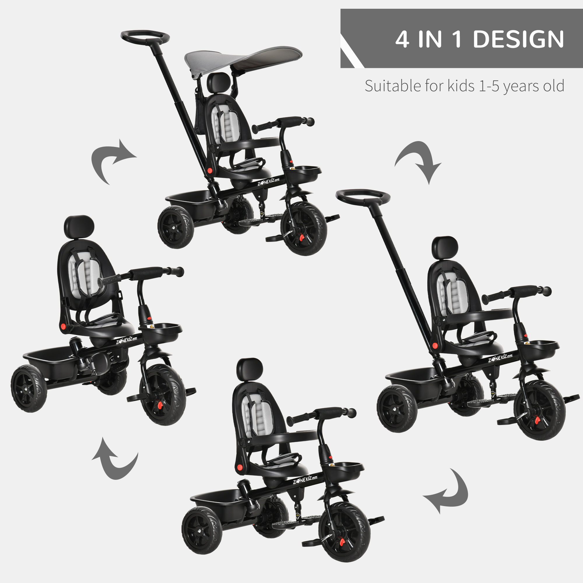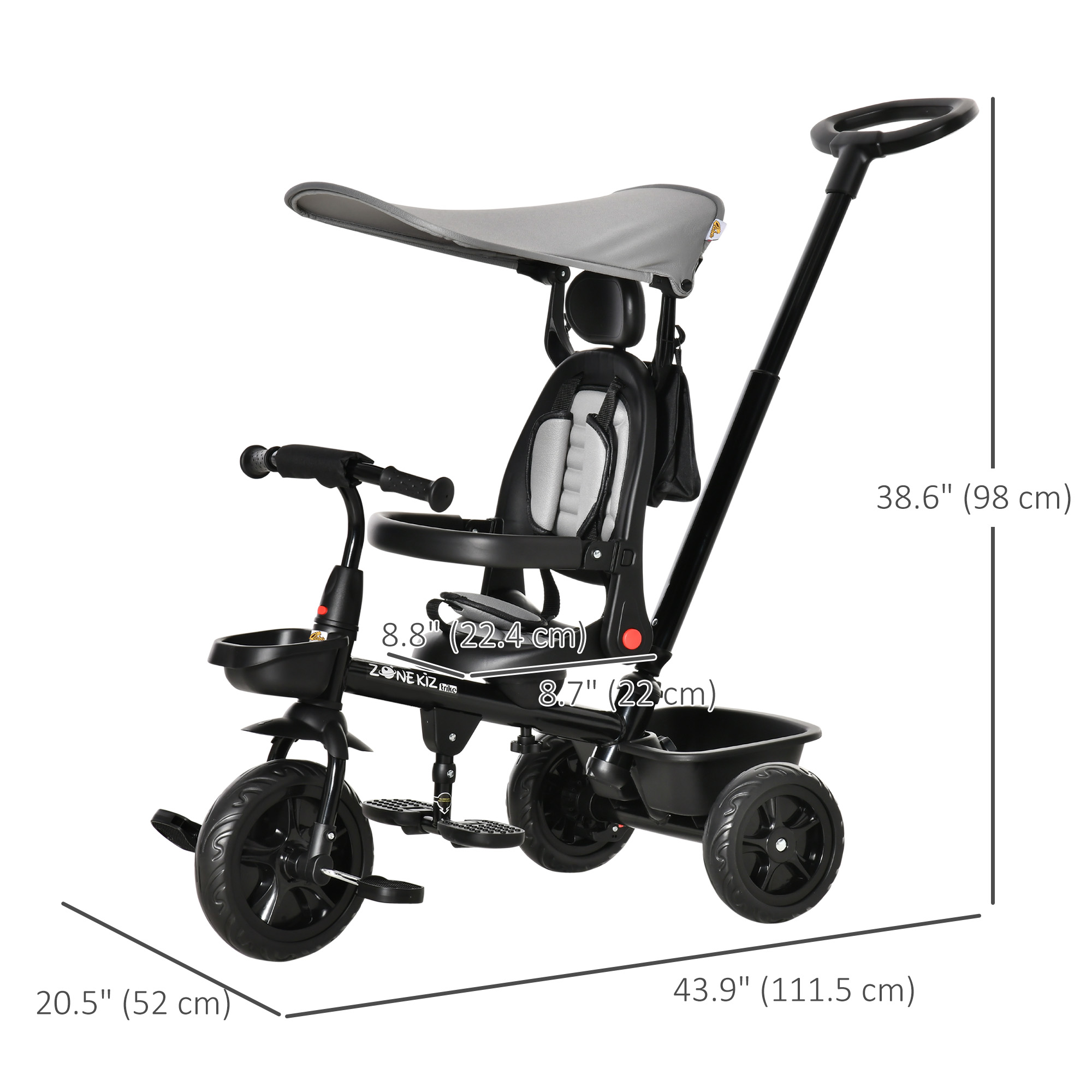 Aosom Qaba Baby Tricycle 4 In 1 Stroller Reversible Seat Adjustable Footrest Brake Clutch Grey | Aosom Canada