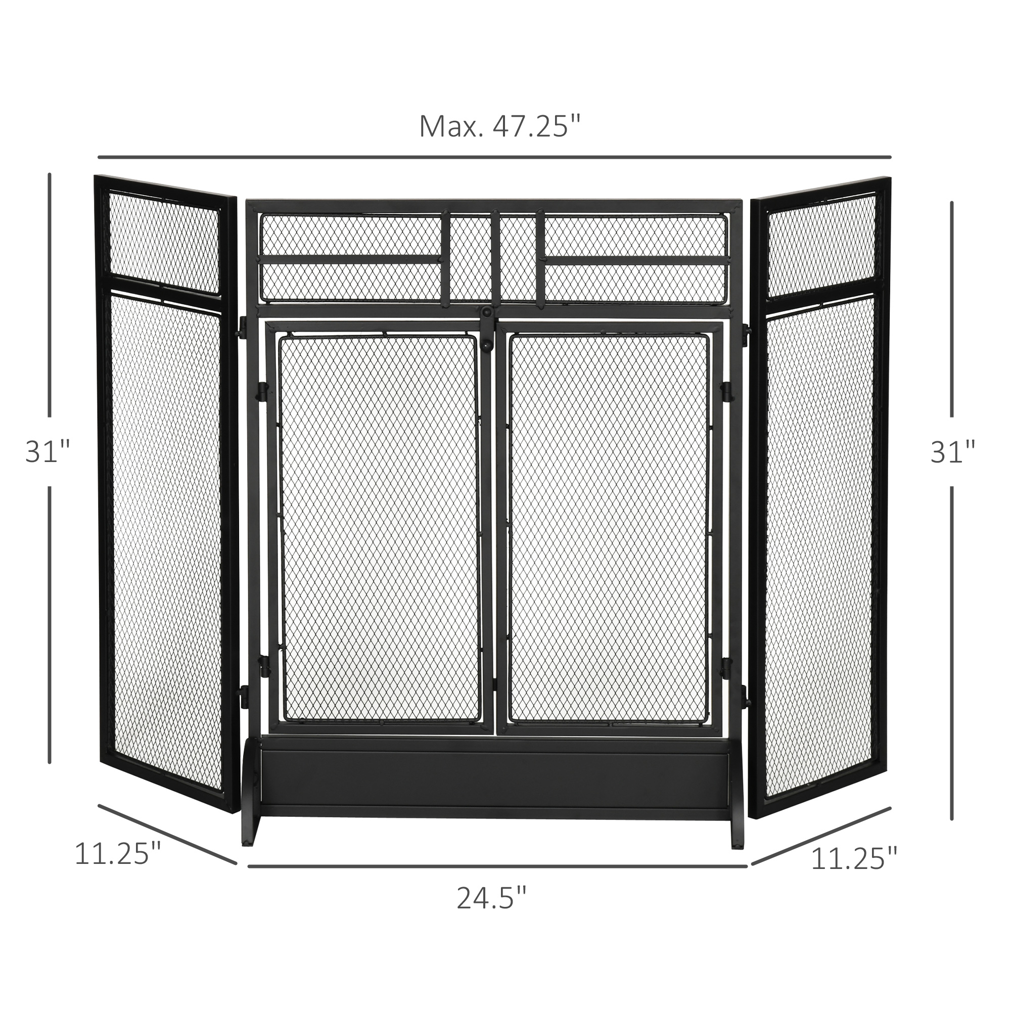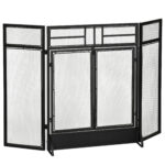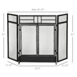 HOMCOM 3-Panel Steel Mesh Fireplace Screen, Decorative Fire Spark Guard Cover with Double Doors, 47x31in, Black | Aosom Canada