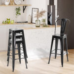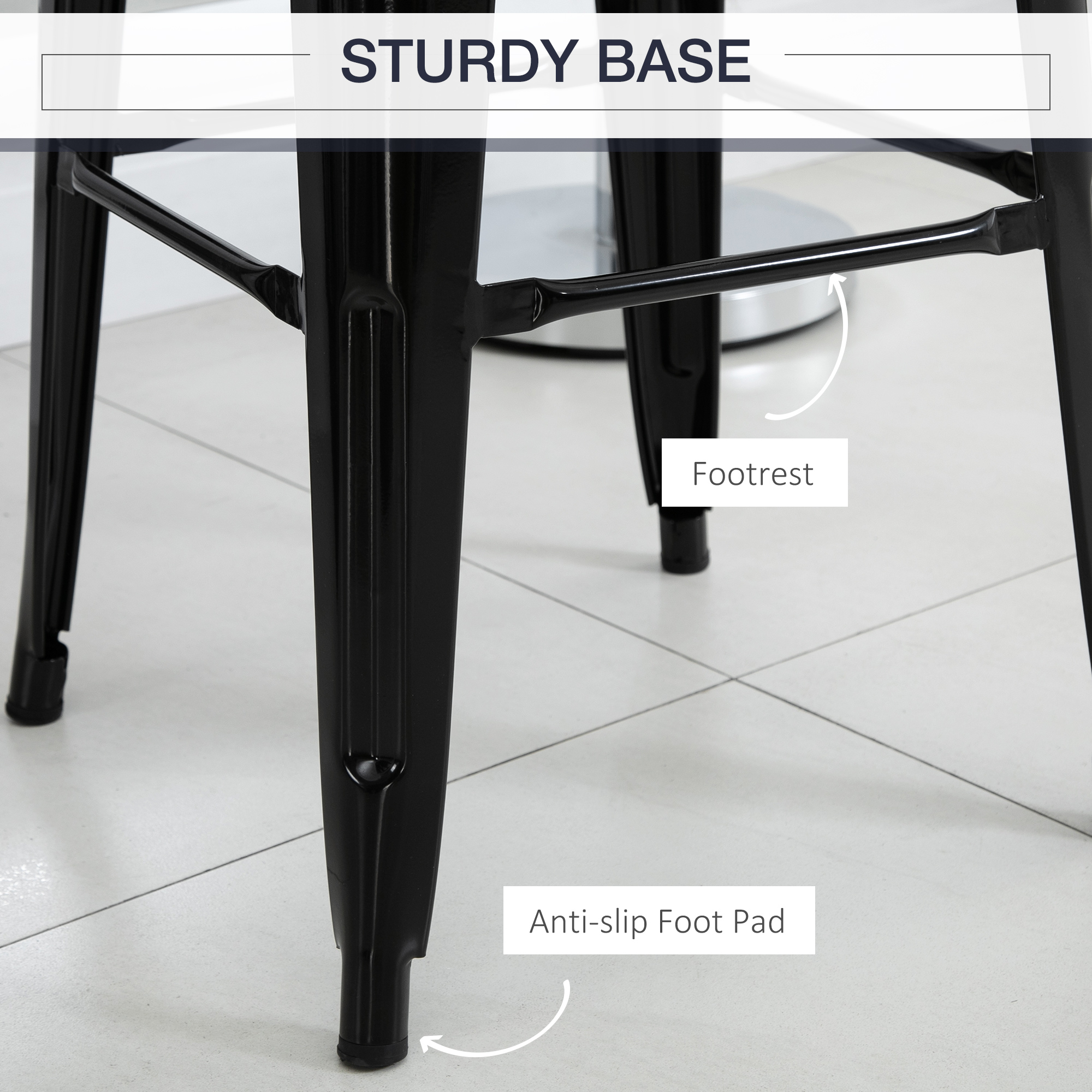 HOMCOM 30″ Bar Height Metal Kitchen Stools Set of 4 Stackable Chairs with Removable Back for Island Pub Black | Aosom Canada