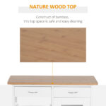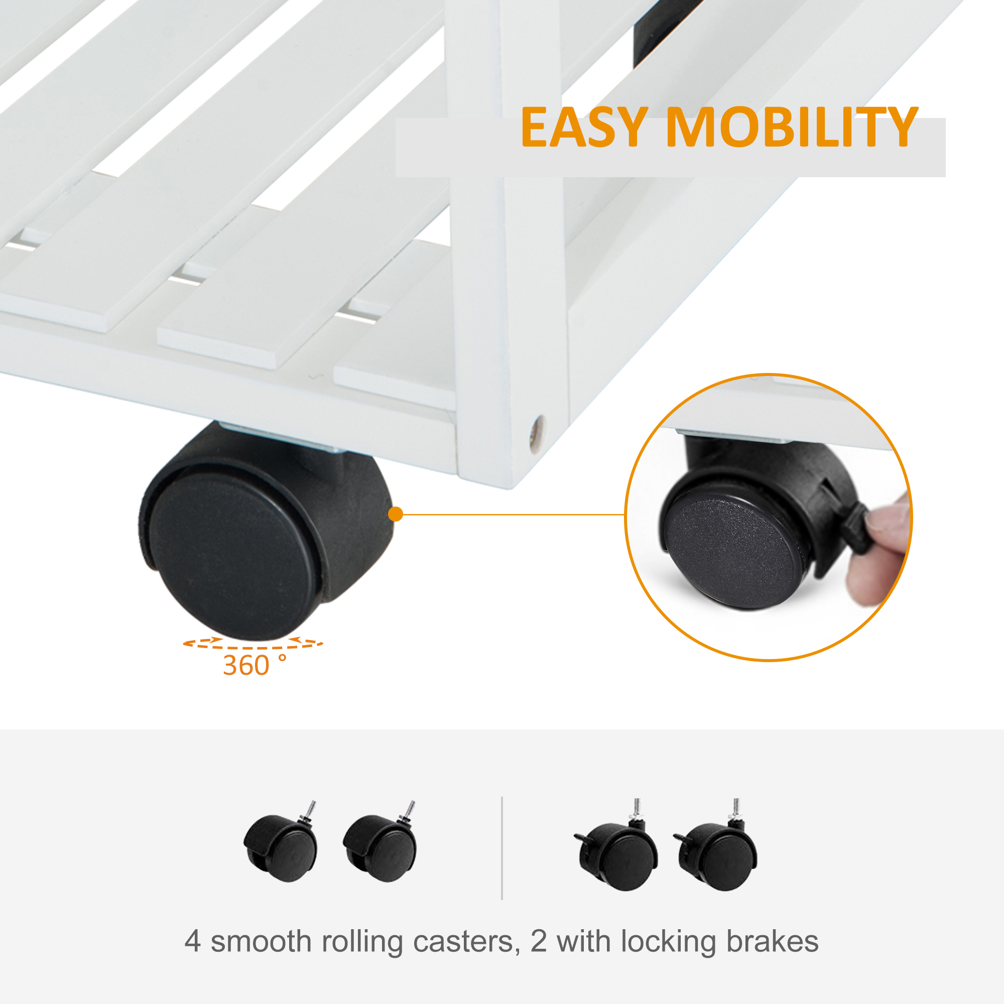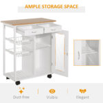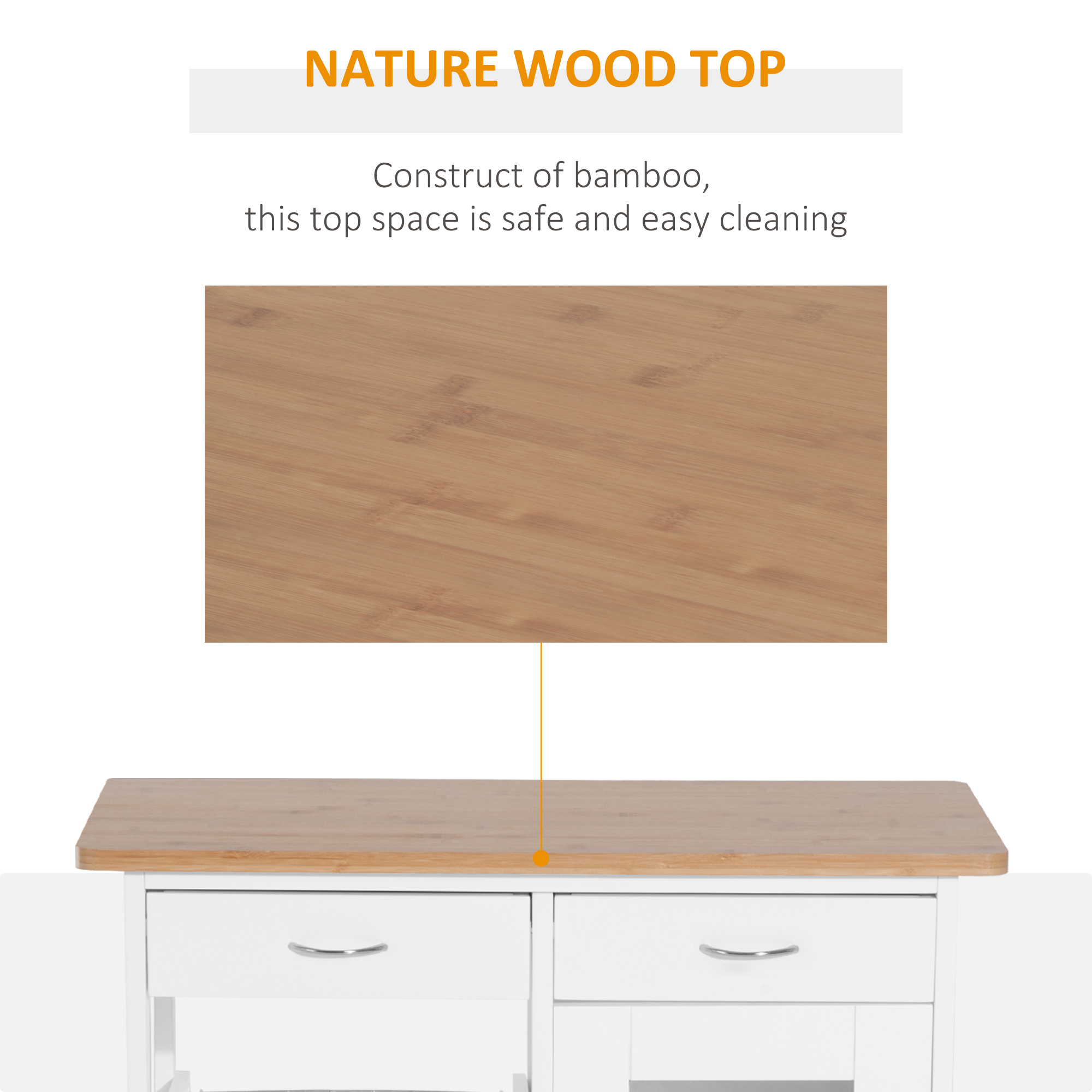 HOMCOM 34″ Rolling Kitchen Island: White Wood Trolley Cart with Bamboo Top, Drawer Cabinet & Wheeled Storage | Aosom Canada