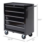 HOMCOM 5 Drawer Steel Rolling Tool Cabinet Wheeled Storage Cart Box, Black, 31″ | Aosom Canada