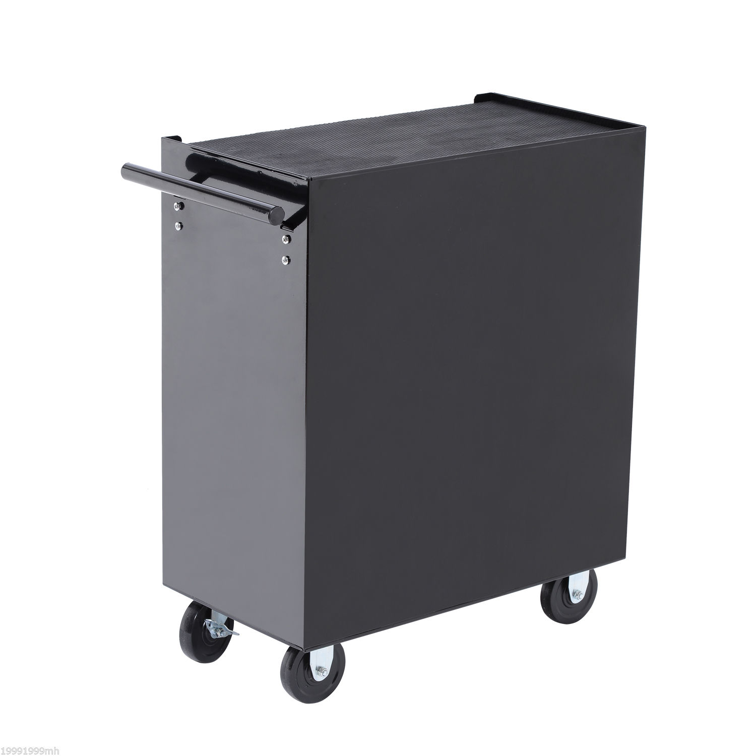- Four Wheels: Allows for easy movement of the cabinet, with a side handle to push and pull. The tool cart’s two wheels can be locked to keep it securely in place.