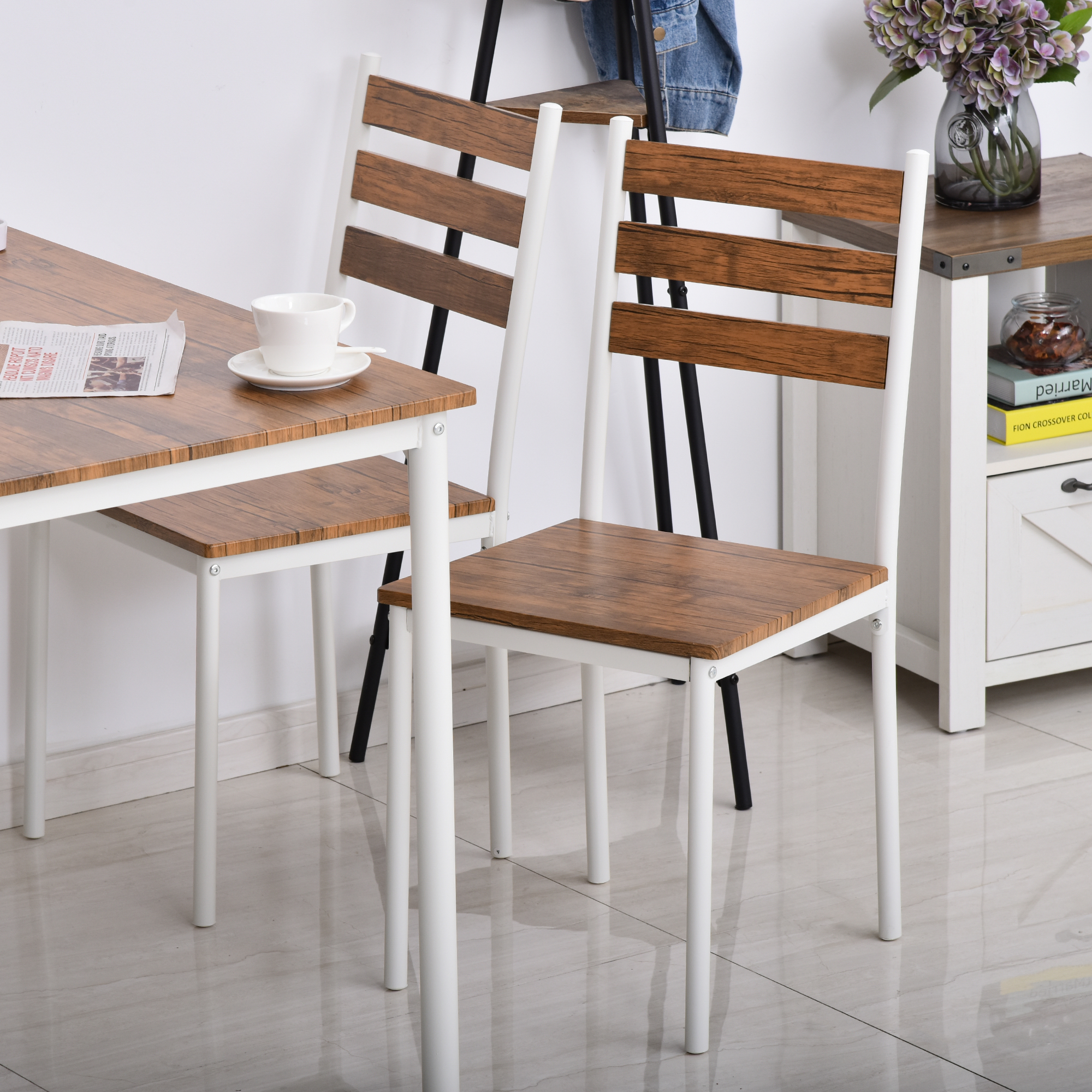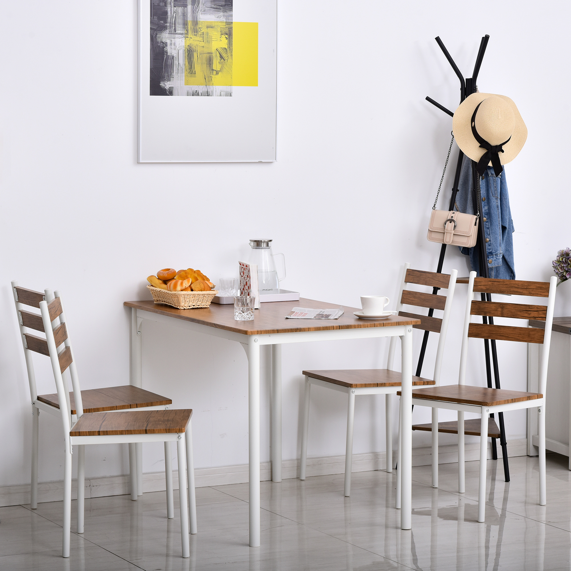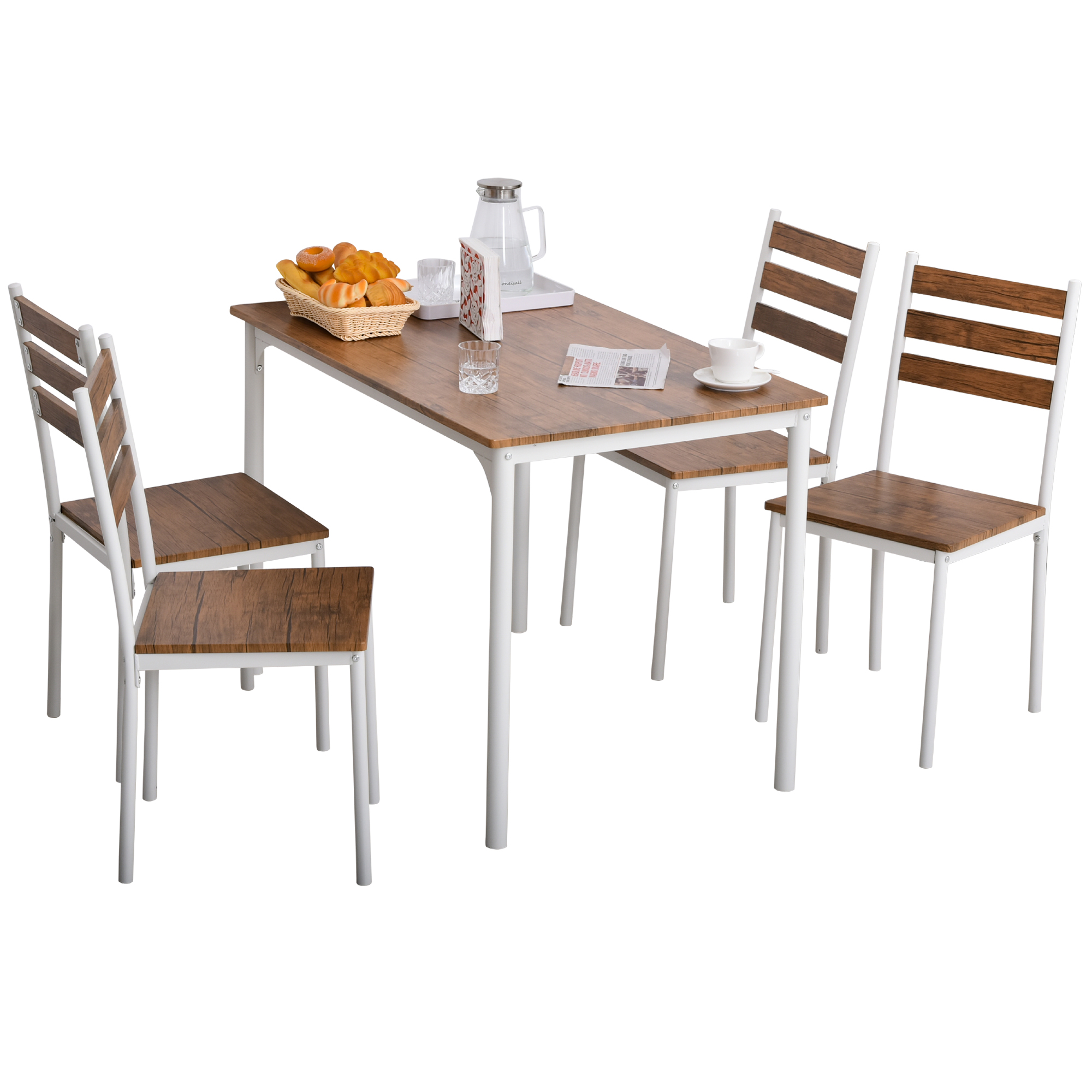 HOMCOM 5-Piece Dining Simplicity: Modern Wooden Table, 4 Chairs with Metal Legs, White Finish for Minimalist Charm | Aosom Canada