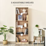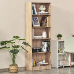 HOMCOM 5-Tier Bookcase: Adjustable Shelves Display Unit for Living Room/Office, Natural Wood | Aosom Canada