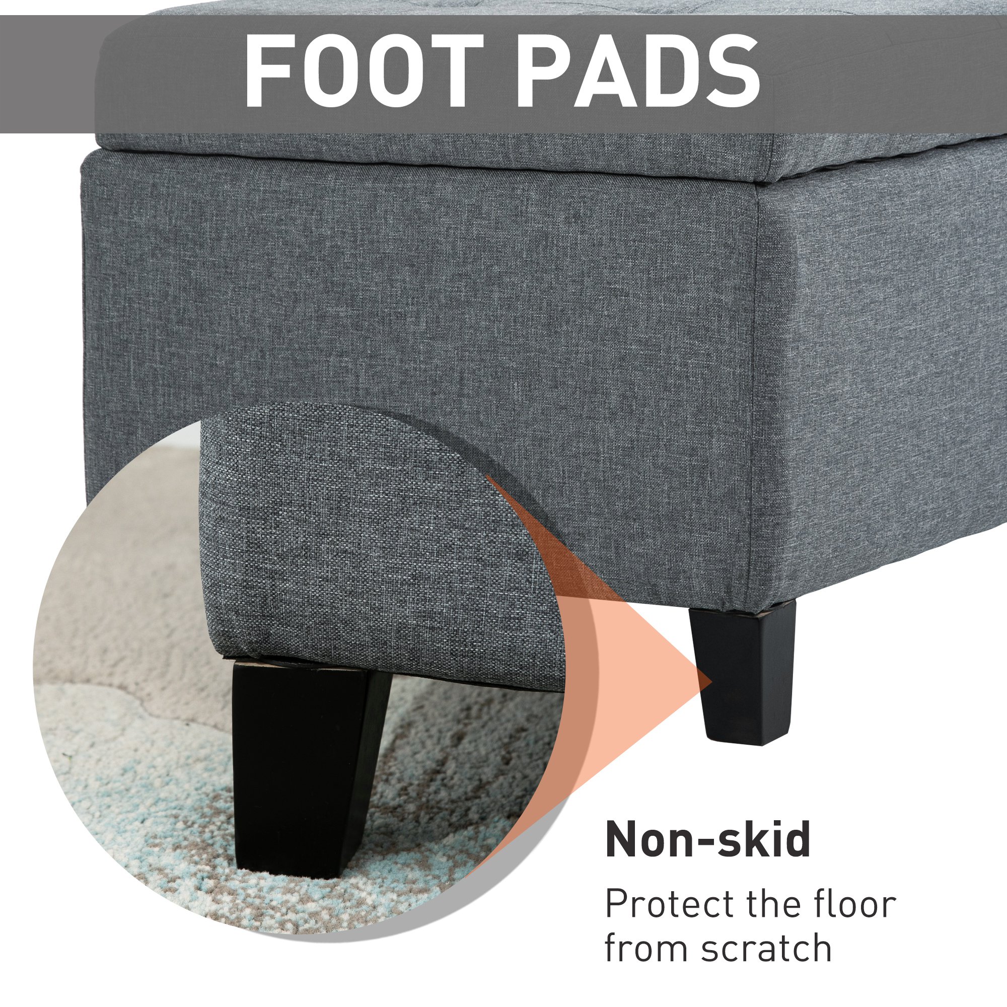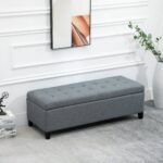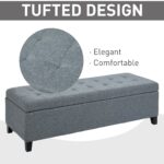 HOMCOM 50″ Large Rectangular Ottoman Bench Tufted Linen Fabric Wood Feet Grey Contemporary Living Room Decor | Aosom Canada