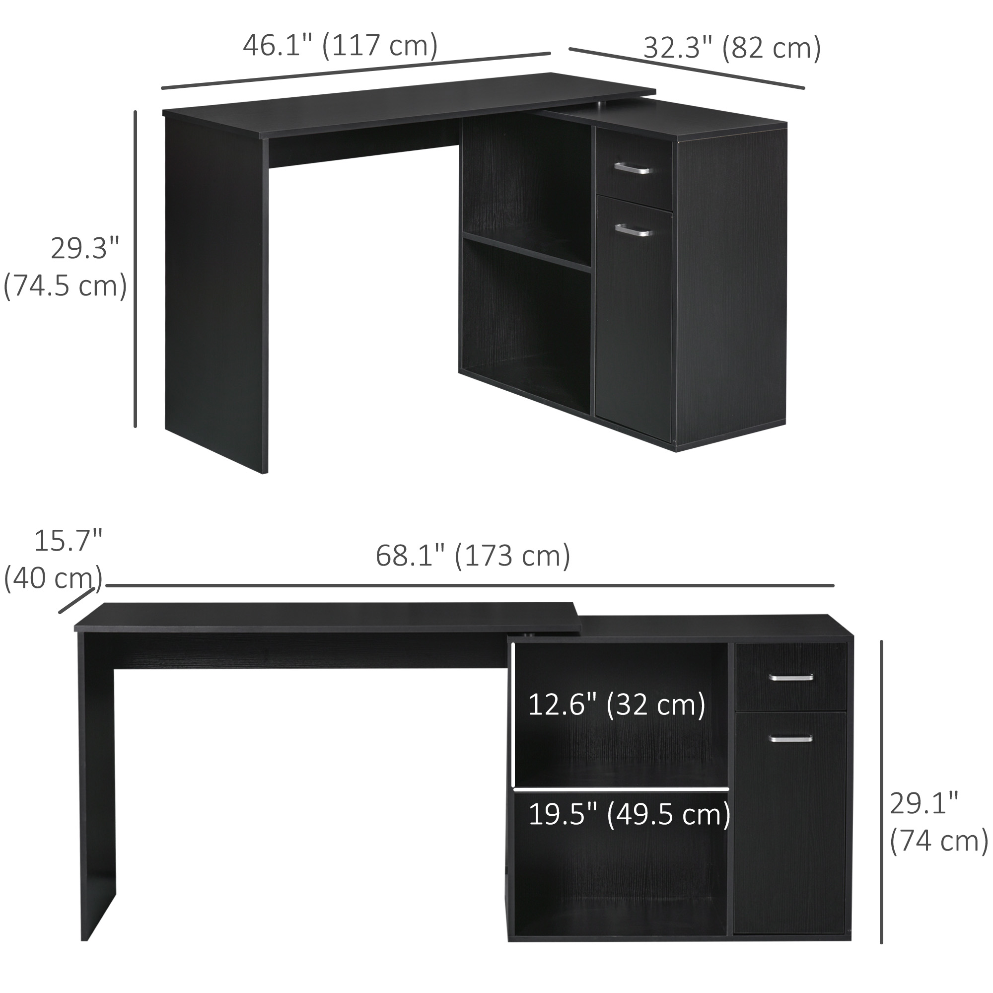 - Large Capacity: The wood desk with three worktops providing you large space to study or work. The L-shaped design allows you to switch between the two desks freely. No need to worry about that computers would hinder you from reading, writing or drawing.