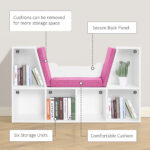 HOMCOM 6-Cubby Kids Bookcase with Cushioned Seat Reading Nook Multi-Purpose Storage Organizer Cabinet Shelf, White Pink | Aosom Canada