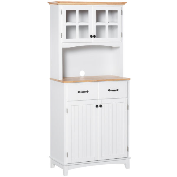 - Ample Storage: This elegant pantry storage cabinet has two cabinets where you can put kitchenware, glasses and plates, two drawers with metallic knobs for your tableware such as knives and forks, a wide countertop to hold microwave oven, coffee machine, toaster etc