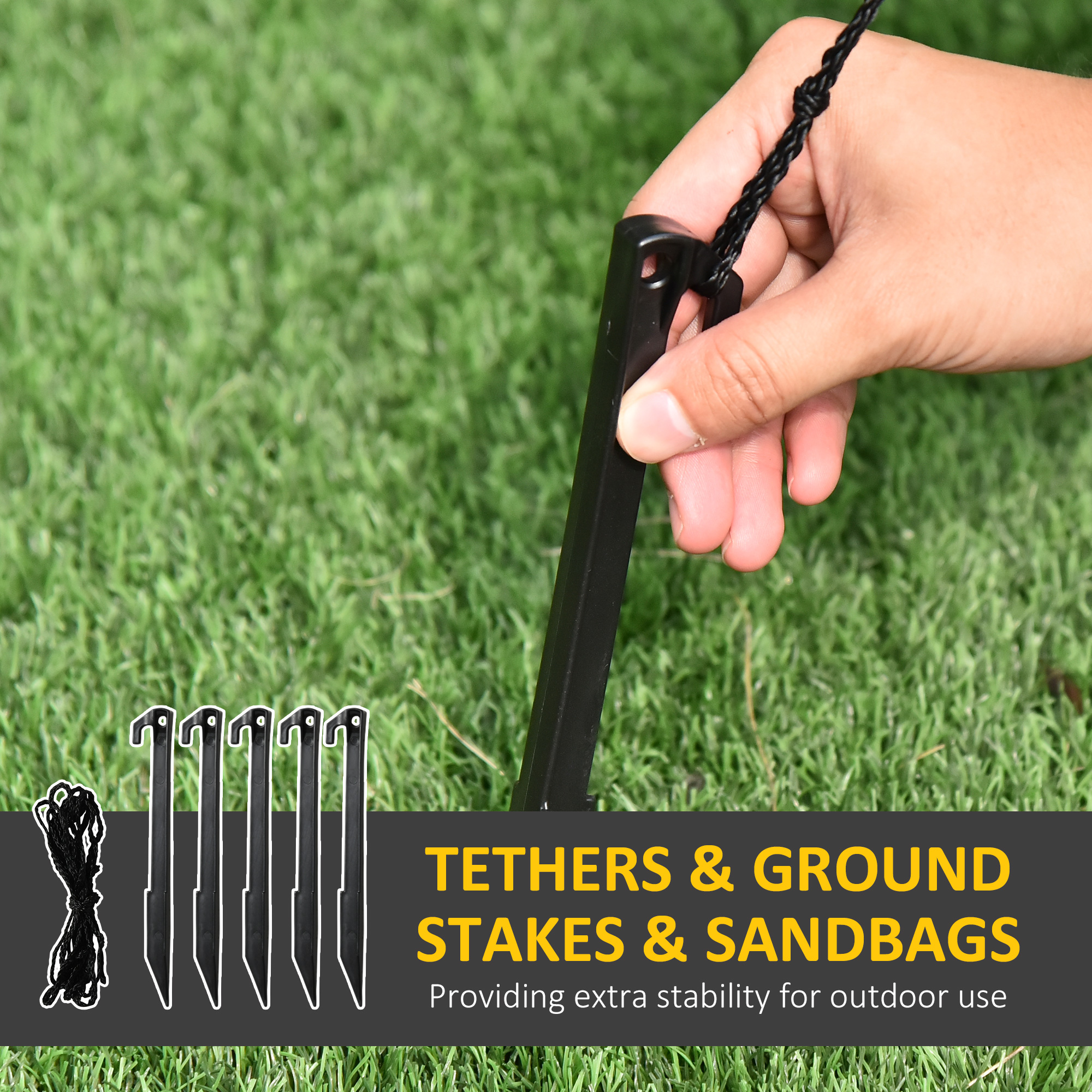 - Hardware and Accessories: This complete display kit includes an internal fan, tether ropes, sandbags, and ground stakes to help secure your holiday yard display.