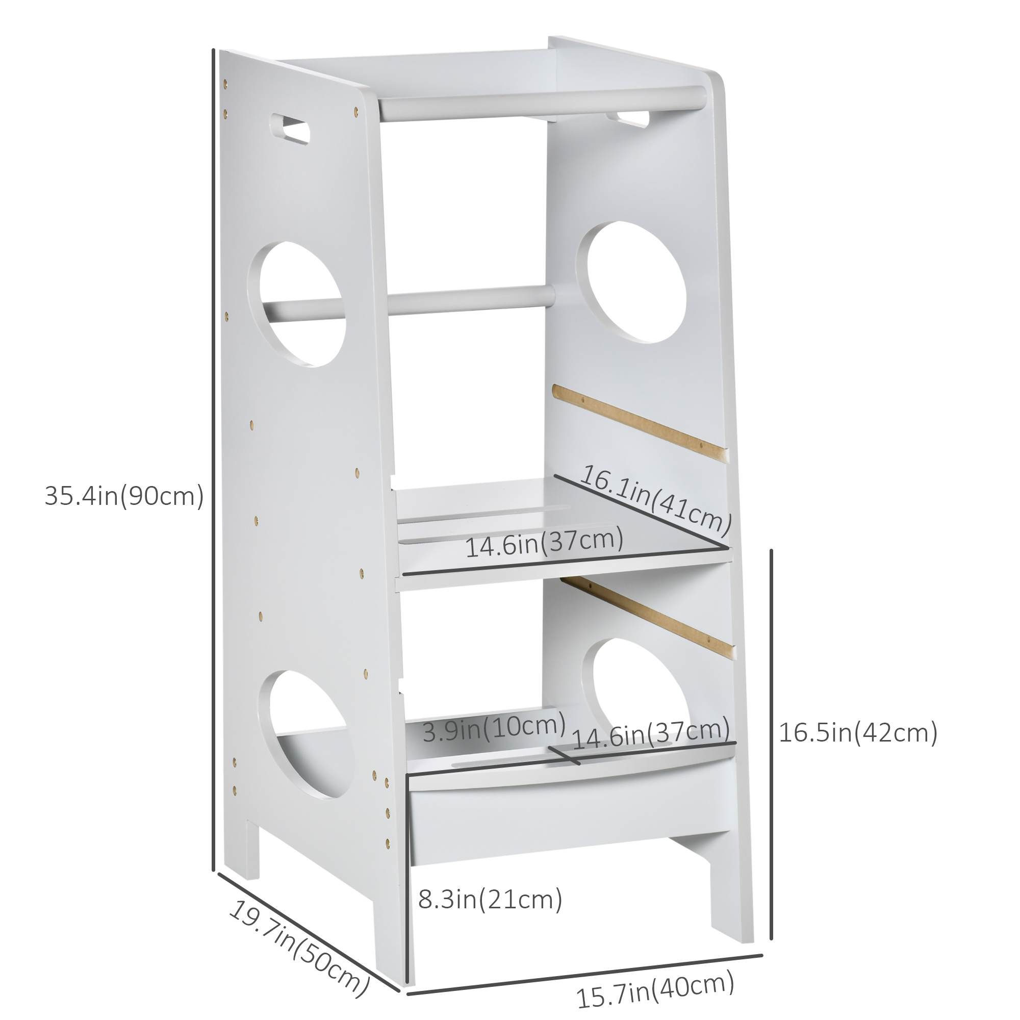- Secure Support: The considerate guardrails and handrails of this kitchen tower provide perfect support for your children.