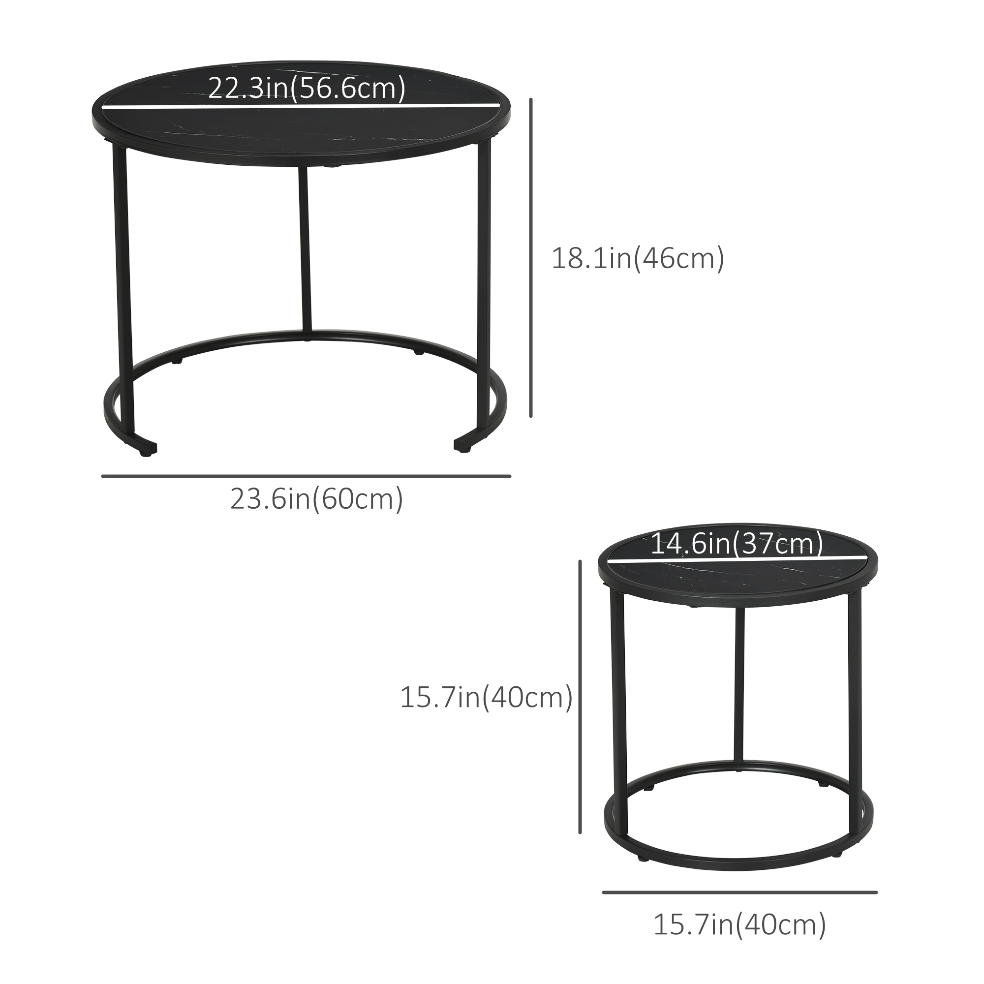 Homcom Black Nesting Coffee Tables: Round Set of 2 with Faux Marble Top & Metal Frame for Modern Style | Aosom Canada
