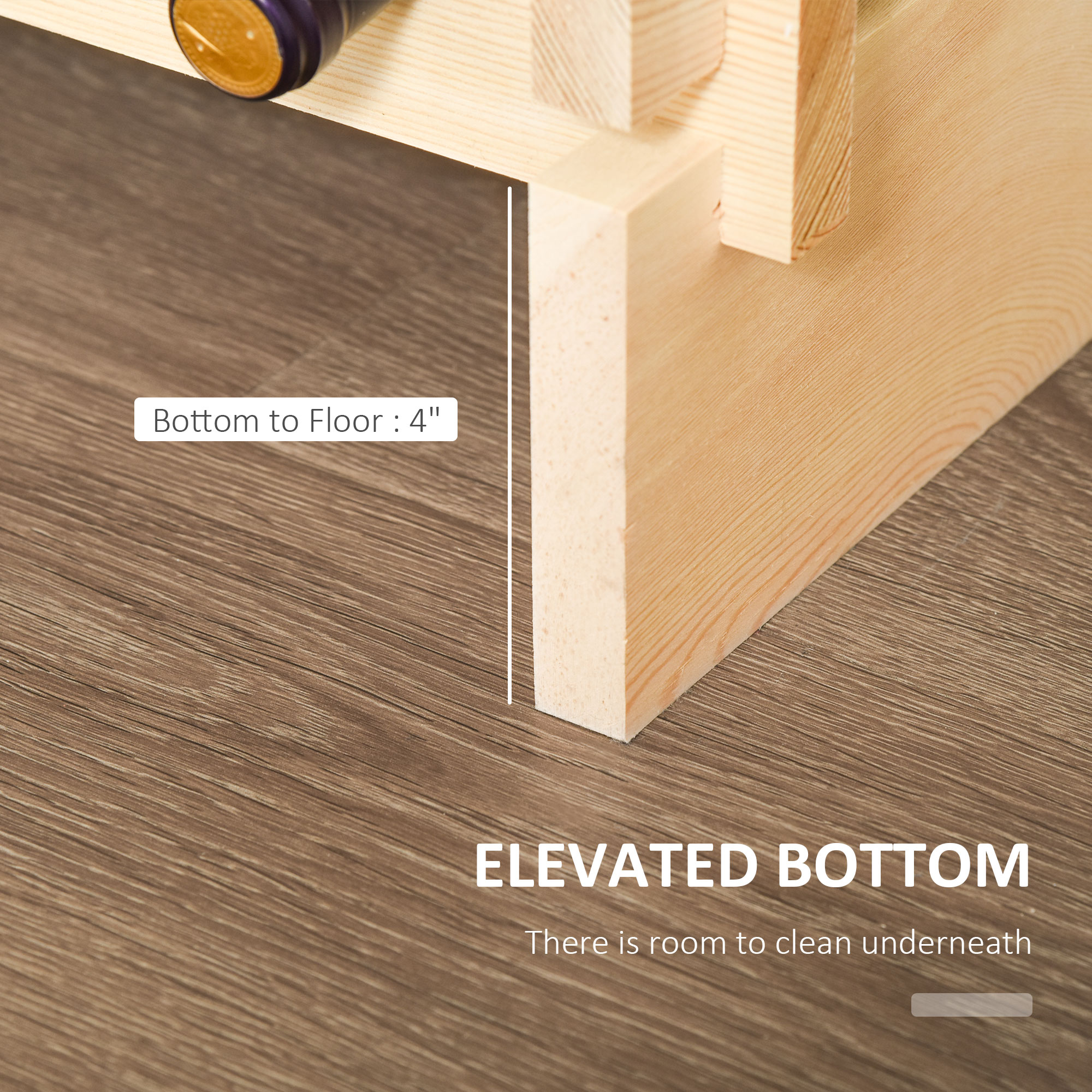 - Elevated Bottom: Bottom to floor height: 4″. There is room to clean underneath. Space Between Shelves: 3.75″. The wine storage racks accommodate various sizes of bottles
