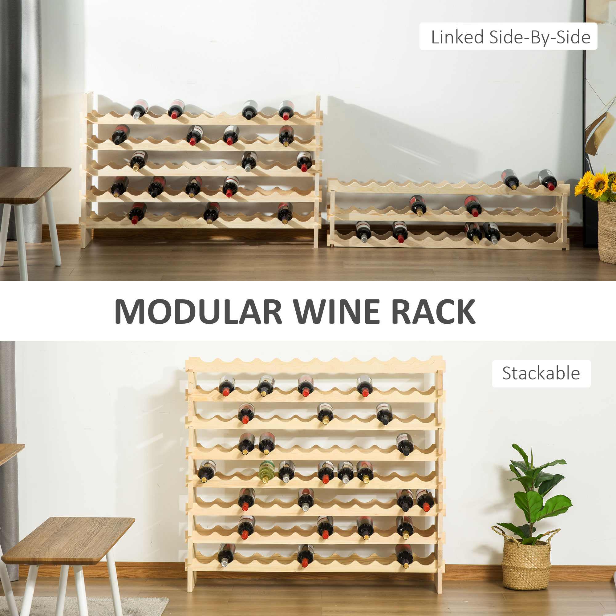 - Modular Wine Rack: Modular wine holder are stackable or linked side-by-side by connecting a second rack for multiple arrangements