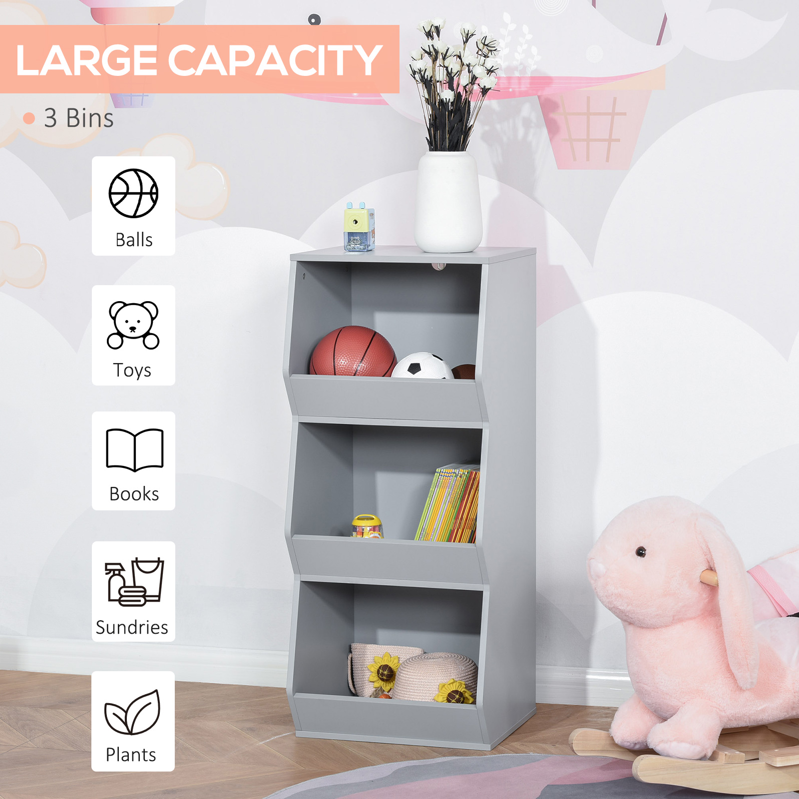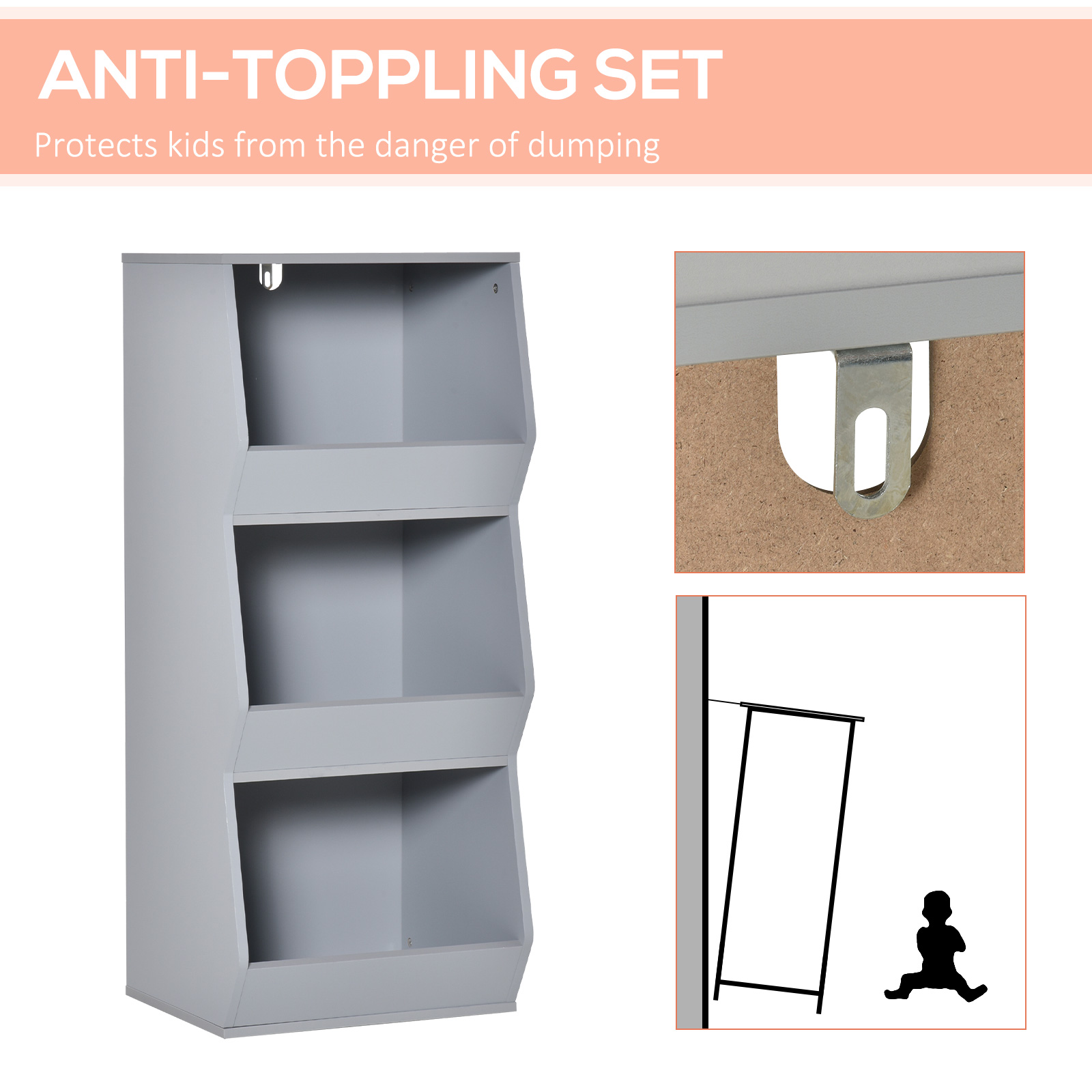 HOMCOM Children’s Storage Cabinet with 3 Shelves Anti-Topple Bookcase Toy Organizer for Playroom Bedroom Grey | Aosom Canada