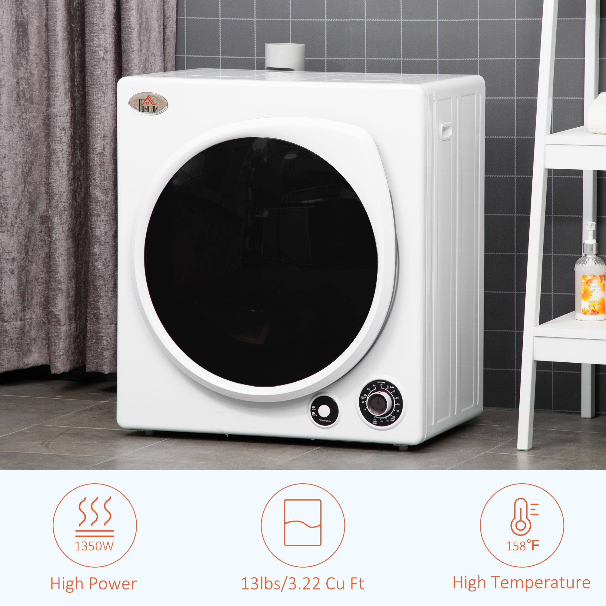 - Powerful Drying: With its 1350W power and generous 3.22 cu. Ft. capacity, this portable apartment dryer can quickly dry up to 13 lbs. of wet clothes. It can reach a maximum temperature of 158℉ for efficient drying. Warm note: For optimal drying results, it is recommended to use the dryer after spinning the clothes.