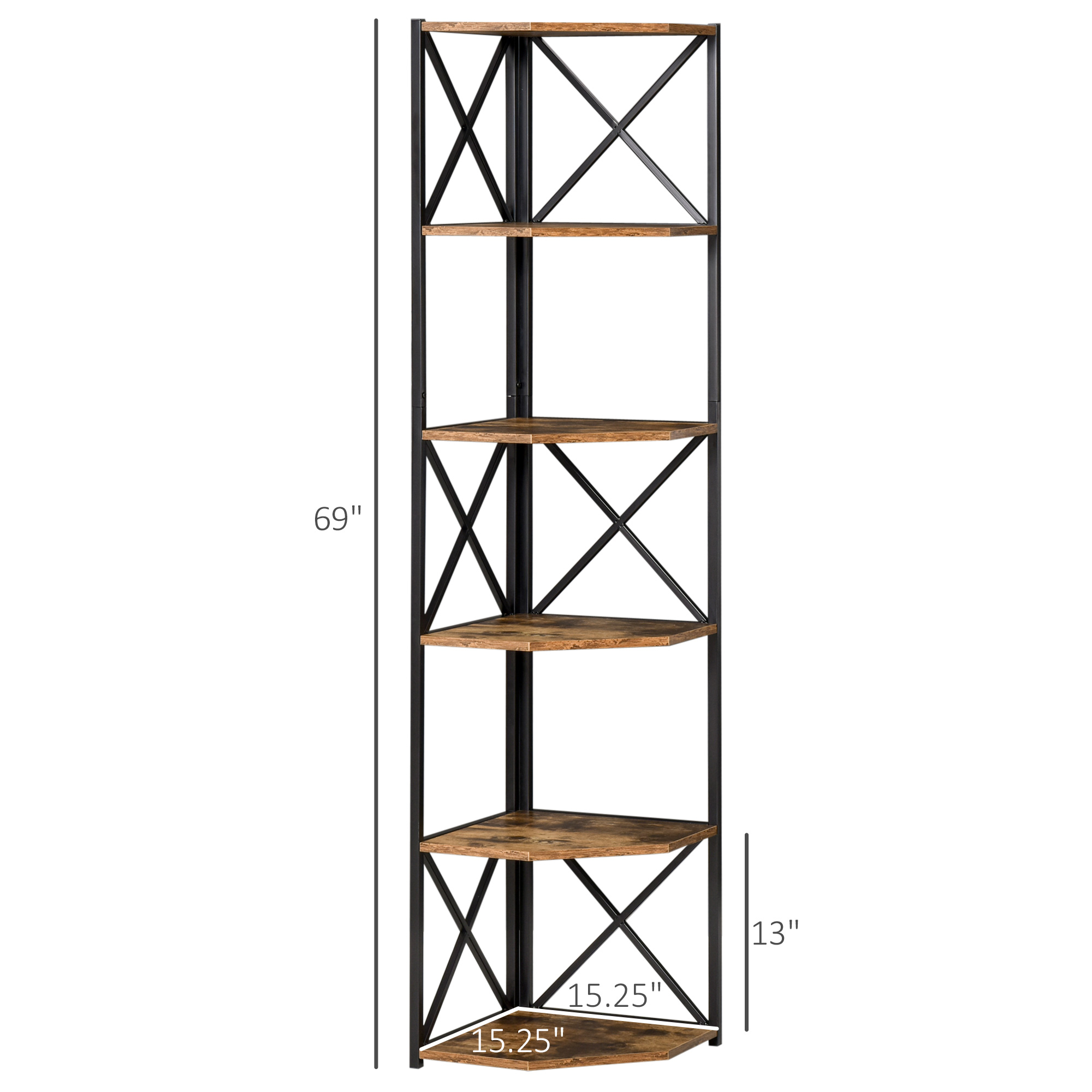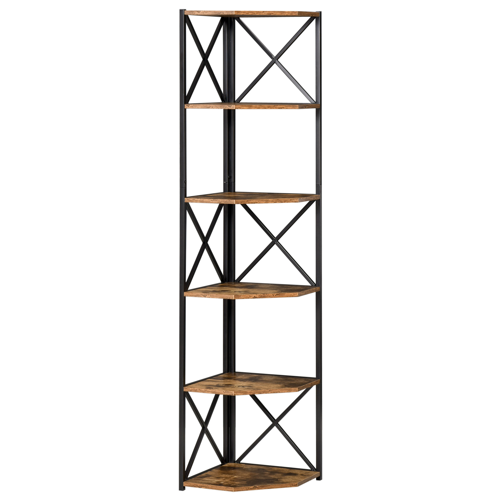 HOMCOM Corner Chic: 5 Tier Corner Shelf Tall Bookcase, Space-Saving Storage Display Organizer for Office Home Decor Furniture | Aosom Canada