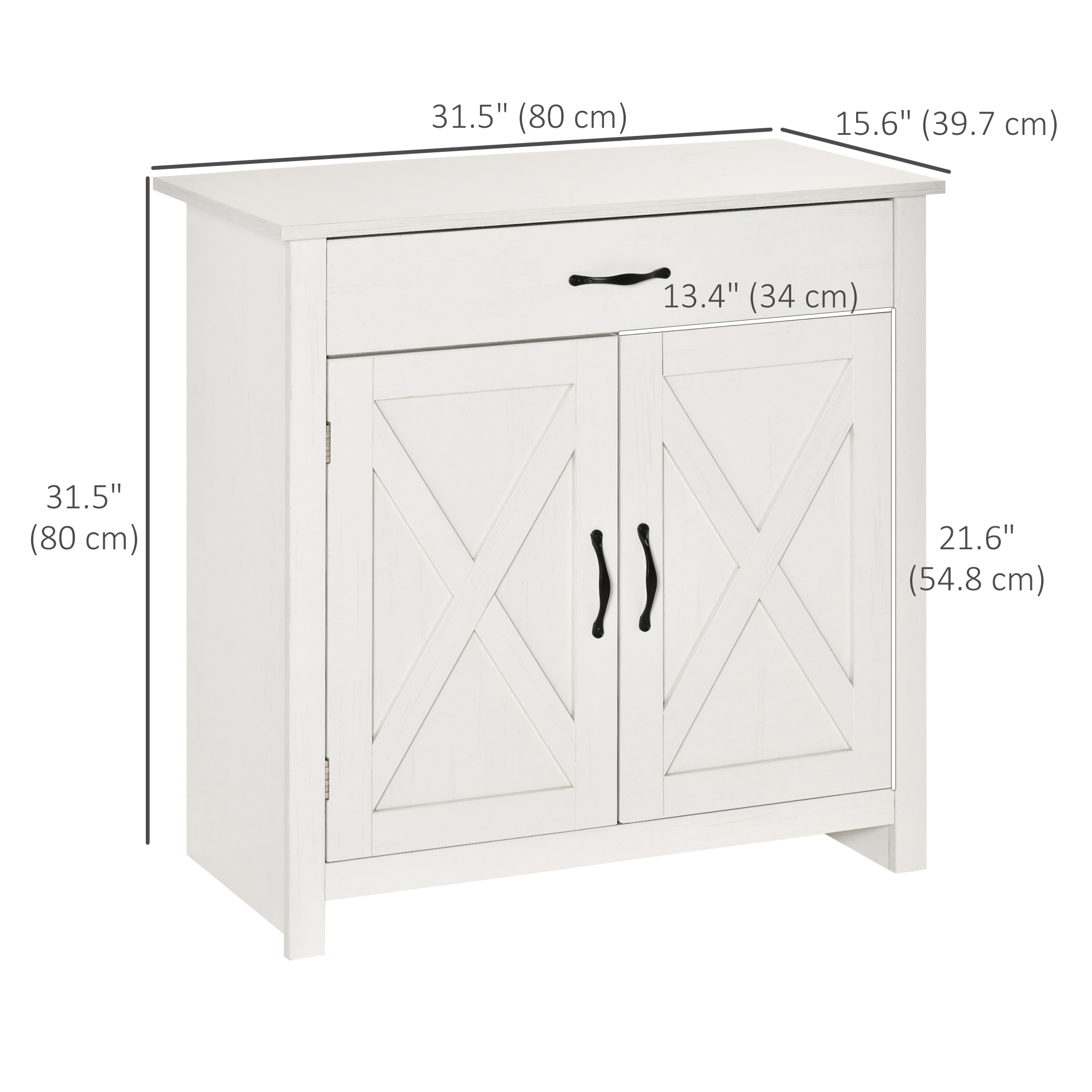 HOMCOM Distressed White Barn Door Cabinet: Farmhouse Sideboard Buffet Storage Coffee Bar for Living Room, Entryway, White Wash Finish | Aosom Canada