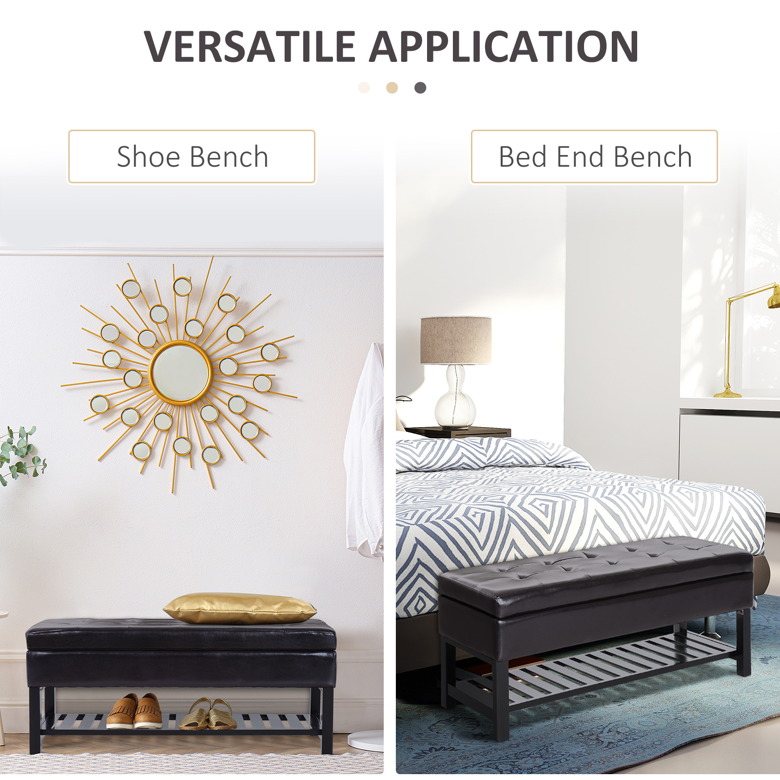 - Sitting Bench: Put on your shoes comfortably and tie them effortlessly with this cushioned shoe bench. This tufted cushion is easy to clean due to its smooth PU cover design.