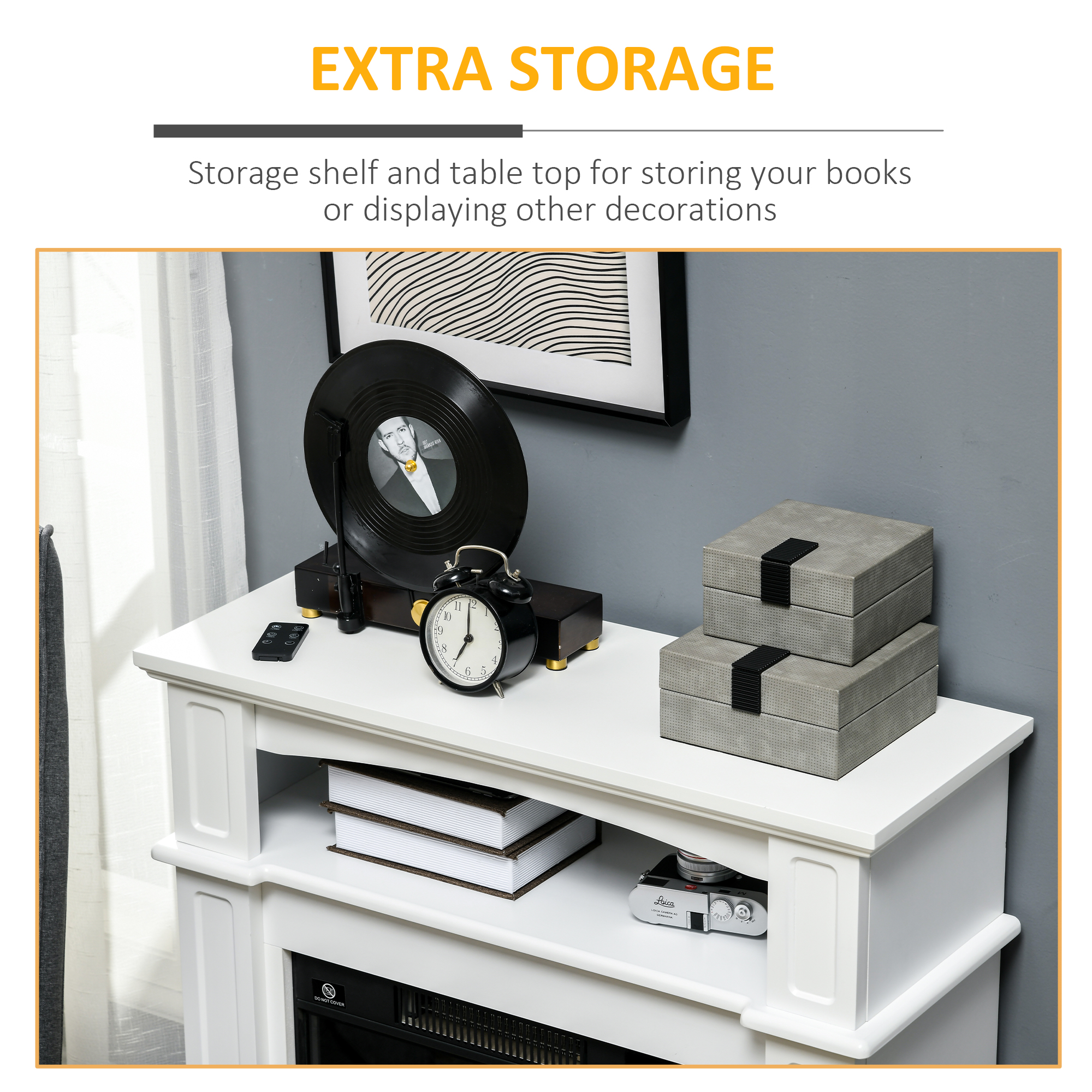 - Electric Fireplace With Mantel: Comes with particle board mantel surround, there is a storage shelf for storing your books or other decorations. Giving your room a real fireplace experience. Ideal for your living room, bedroom, home office and more