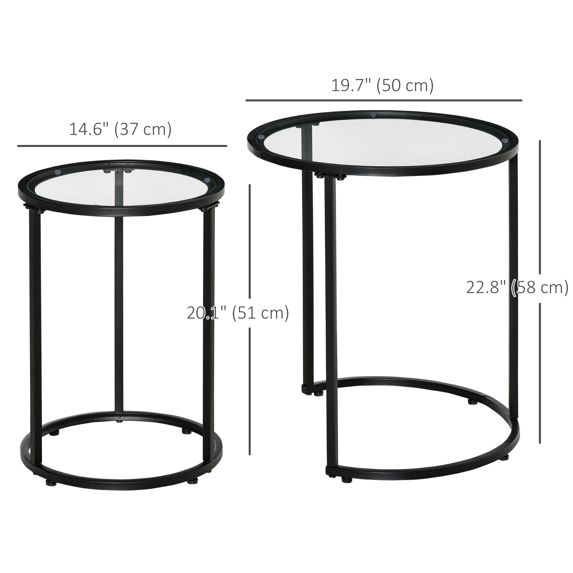 HOMCOM Elegant Nesting Tables: Stylish Round Side Tables with Tempered Glass Top, Metal Base for Living Room, Bedroom, Matte Black | Aosom Canada