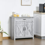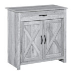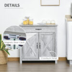 HOMCOM Farmhouse Grey Barn Door Cabinet: Accent Buffet Storage Sideboard Coffee Bar for Living Room, Entryway, Grey Grain Finish | Aosom Canada