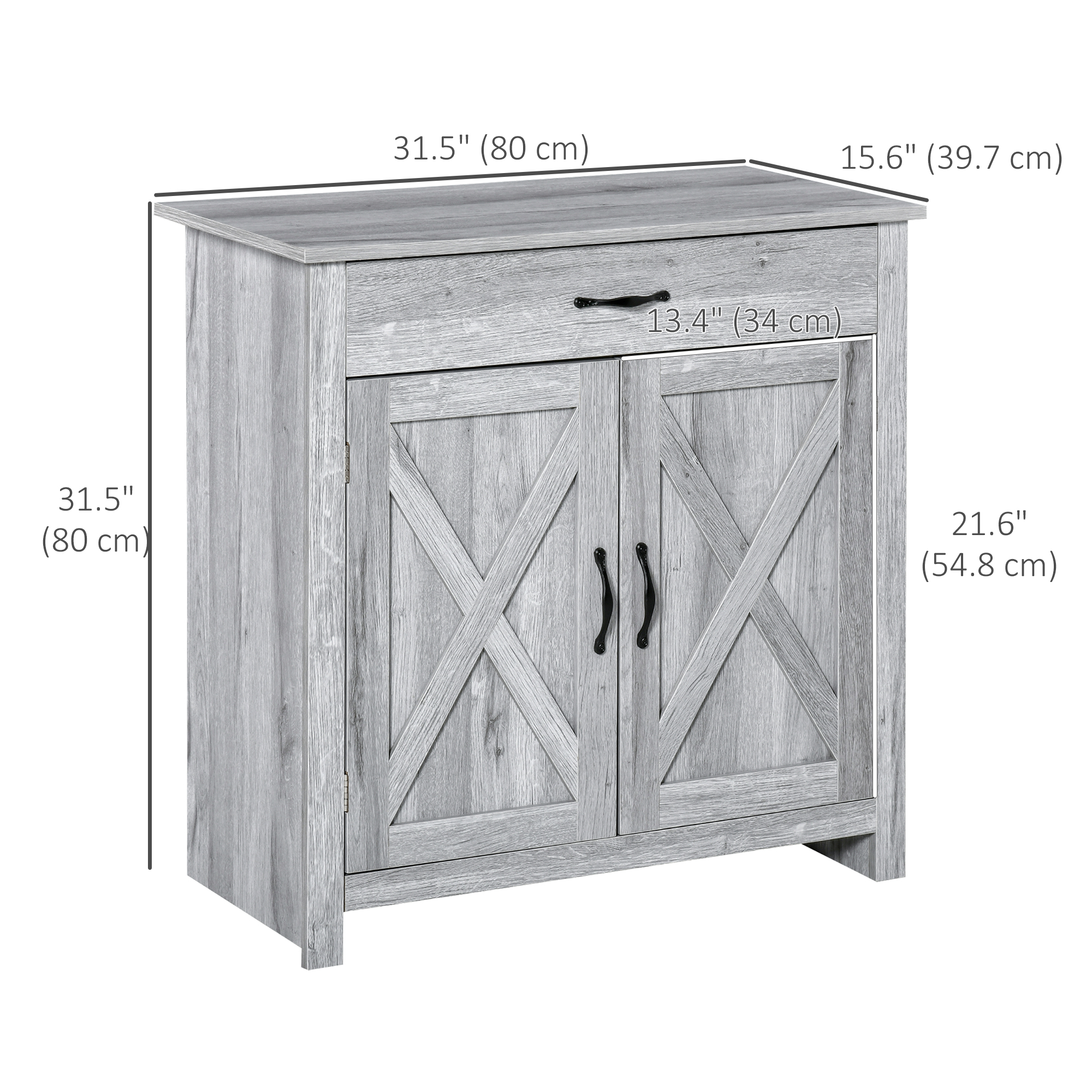 - Sideboard Dimension: Overall: 31.5″W x 15.75″D x 31.5″H, Weight Capacity: 90.2lbs (total), 15.4lbs (shelf), 30.8lbs (top), 9.9lbs (drawer), 19.8lbs (bottom)