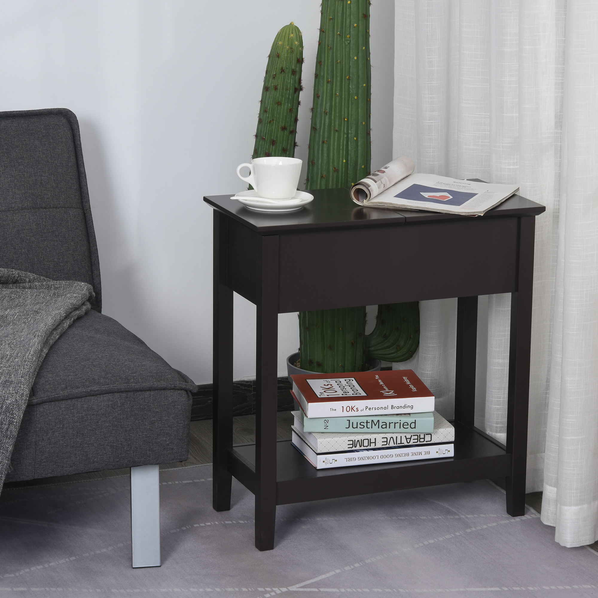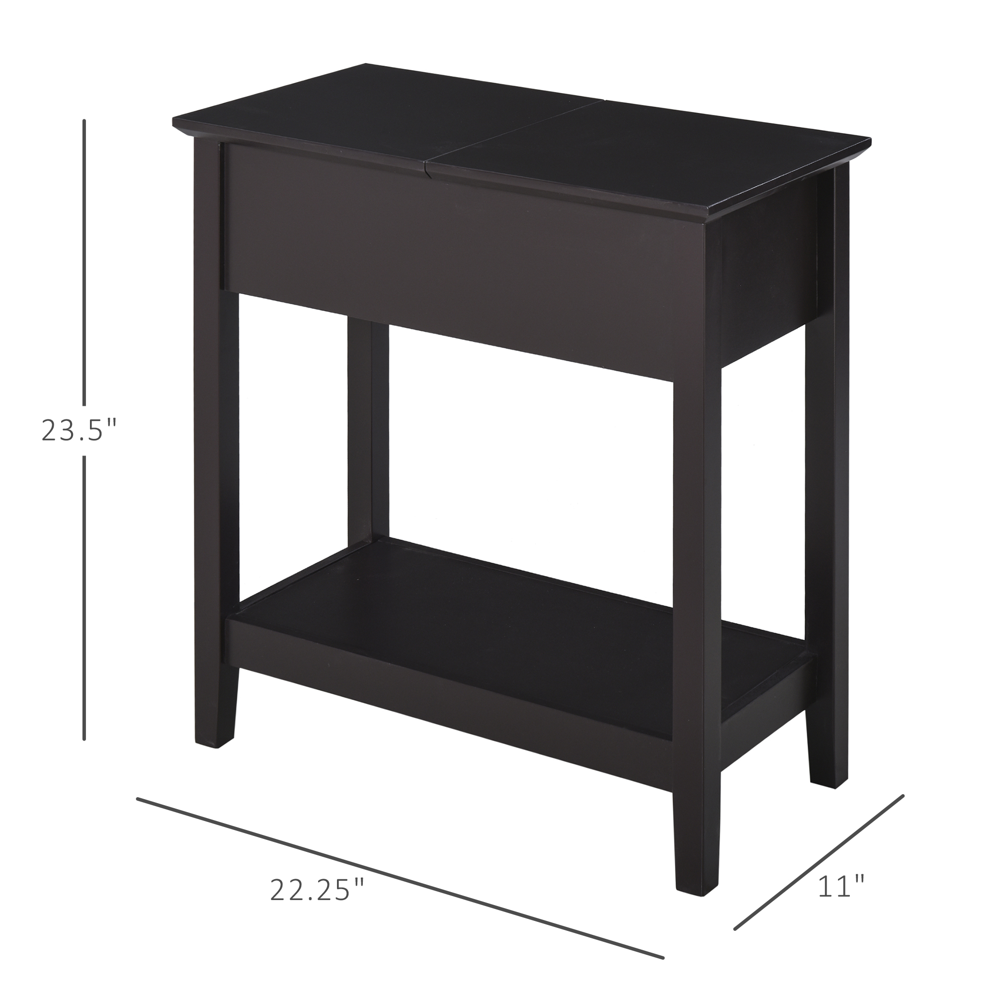 HOMCOM Flip-Top Side Table: Narrow End Table with Storage Shelf, Space-Saving Furniture for Living Room, Bedroom, Rich Dark Coffee | Aosom Canada