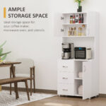 - LARGE STORAGE SPACE: This microwave cabinet has ample space to enlarge your storage space and keep your room clean. Equipped with an open storage compartment, 3 storage drawers, and 2 two-layer cabinets, you can store all kinds of things. The shelf in both pantry cabinets is 3-level adjustable to fit different heights of your items.