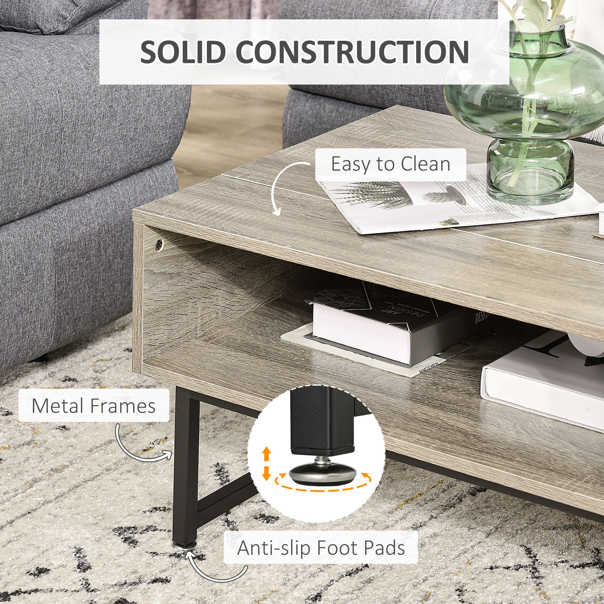 HOMCOM Grey Modern Lift Top Coffee Table: Center Table with Hidden Storage and Metal Frame for Living Room | Aosom Canada