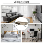 - Lift-top Design: This living room table’s tabletop can be raised and pushed forward to create a floating work surface. These two desktops can be independently presented and lowered without affecting each other.