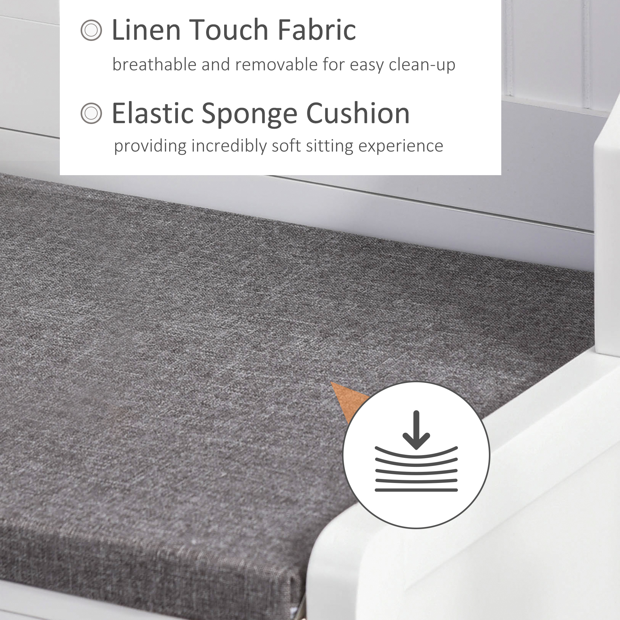 - Comfortable Experience: Thick sponge padding with linen touch fabric, soft and breathable, providing a soft sitting experience. The coat rack shoe storage bench allows you to change your shoes while sitting and put your shoes on the bottom shelves.