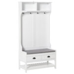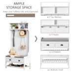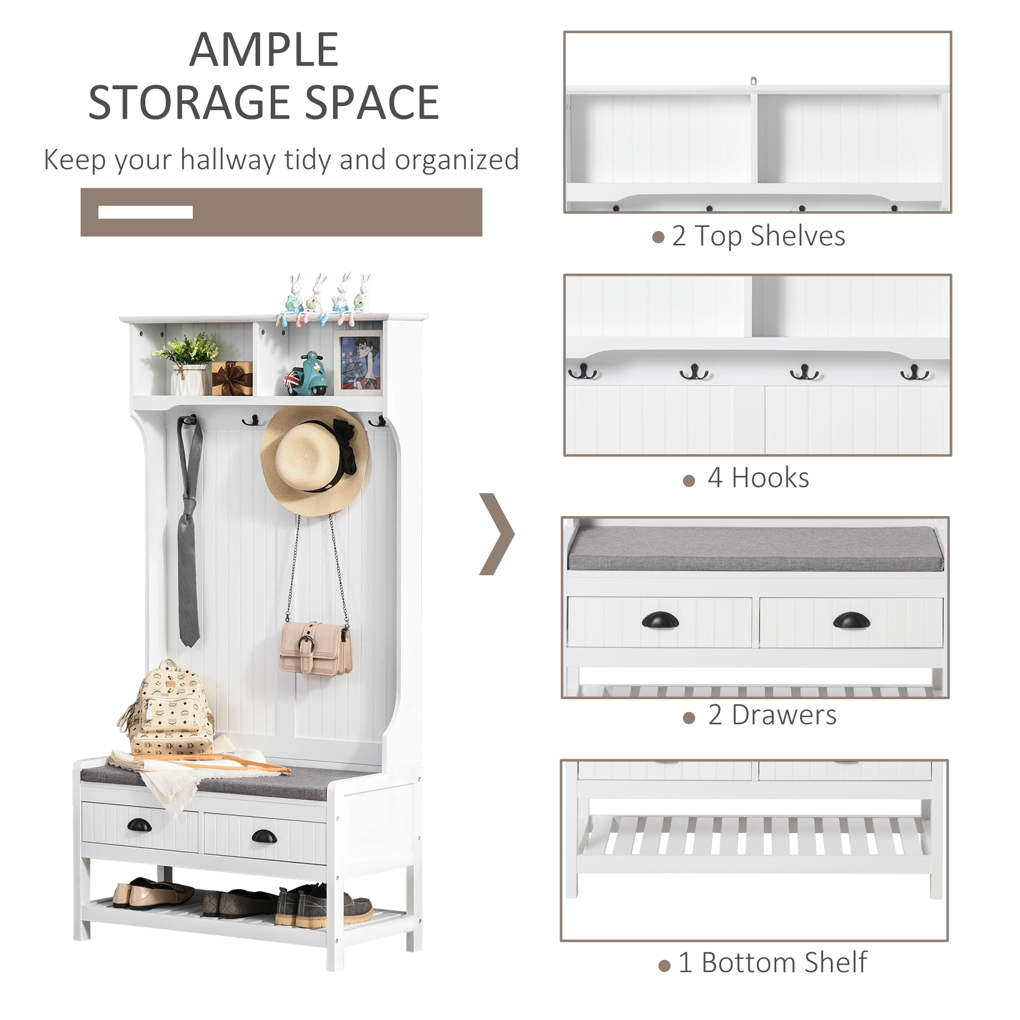 HOMCOM Hall Tree Bench: Entryway Bench with Coat Rack, Hooks, Drawer & Padded Seat, White | Aosom Canada