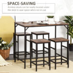 - Seats up to 4: This functional dining set includes a rectangular bar table and 4 matching stools. It’s perfect for creating a cozy dining and relax with your family and friends.