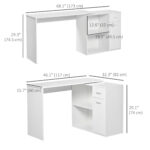 HOMCOM L Shaped Desk Corner Computer Table with Storage Cabinet Shelf Study Writing Home Office White | Aosom Canada
