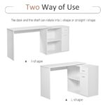 - Rotating Design: Desk with shelves can be rotated in 180 degrees, either L-shape or straight, rotate the work desk in different way to meet different needs, very convenient and space-saving.