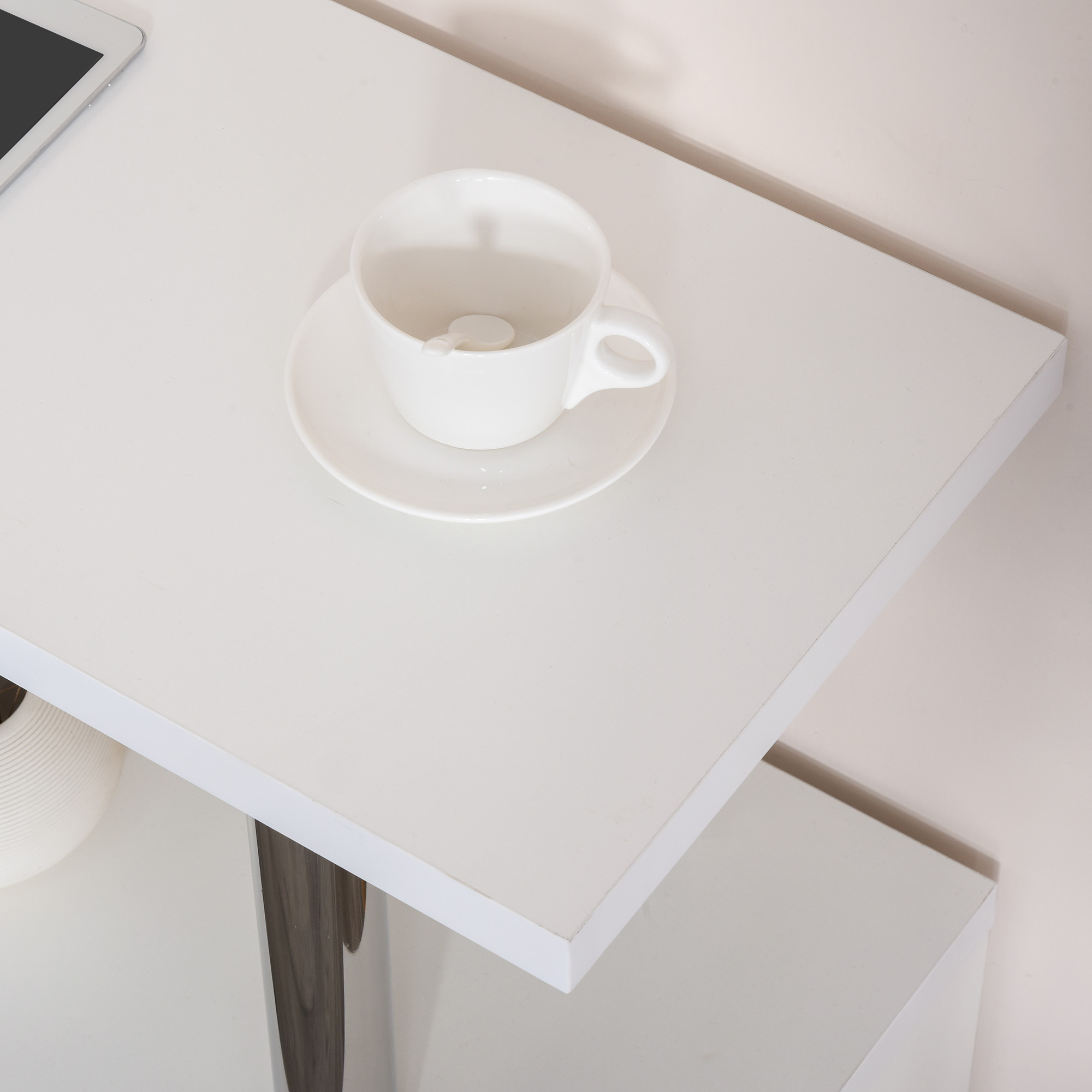 - Ample Desktop Space: A large tabletop of the writing desk provides space for a laptop, monitor, printer, or workstation. The 2-tier S-shaped shelf, the drawer, and the door cabinet offer room for books, collectables, and more.