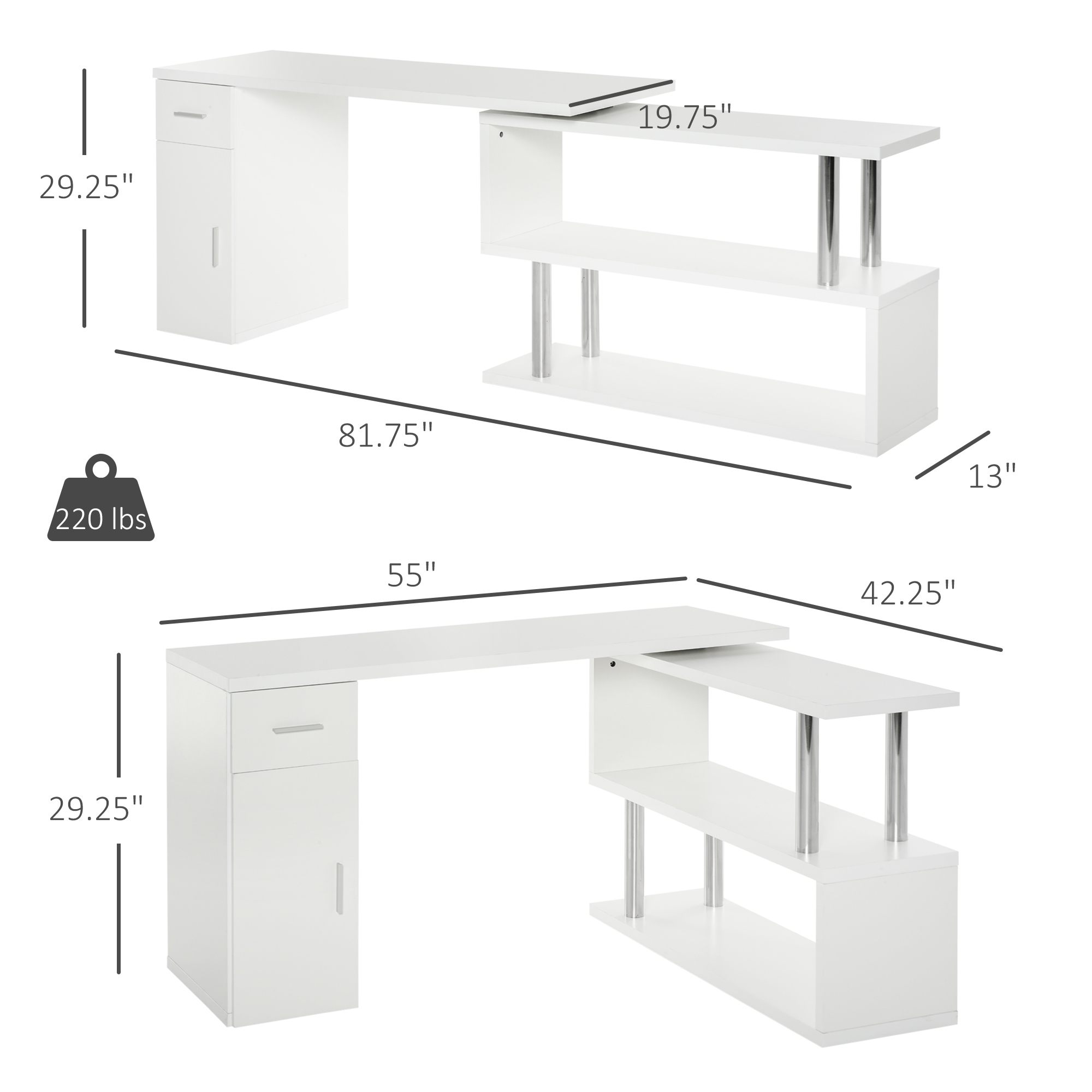 HOMCOM L-Shaped Rotating Desk with Storage Shelves Cabinet and Drawer White for Home Office Study Workstation | Aosom Canada