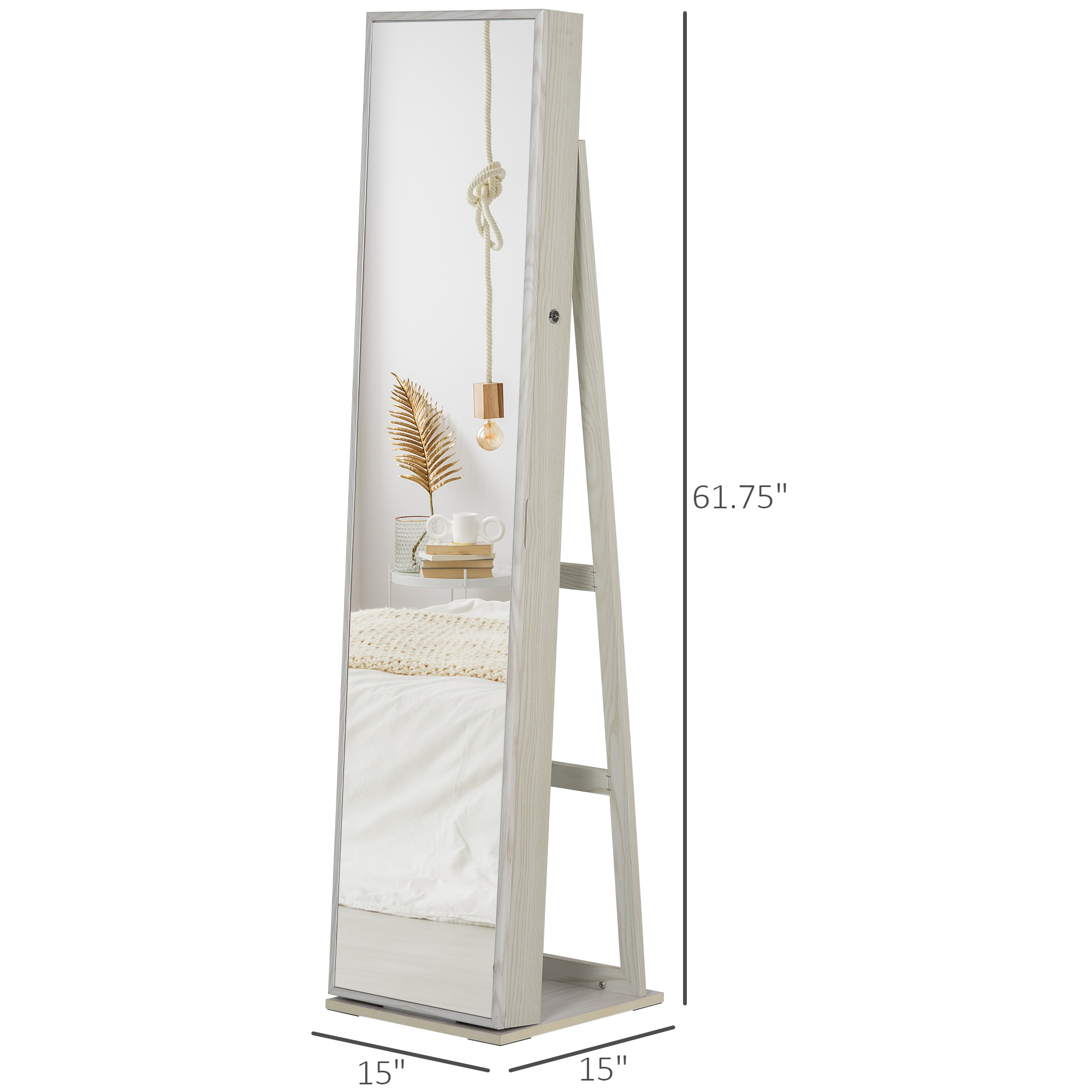 - Lockable Design for Peace of Mind: Our jewelry organizer boasts a beautiful, full-length mirror door that enhances your space and keeps your precious jewelry secure. The lockable feature ensures that your jewelry remains out of reach for children and is protected from rusting.