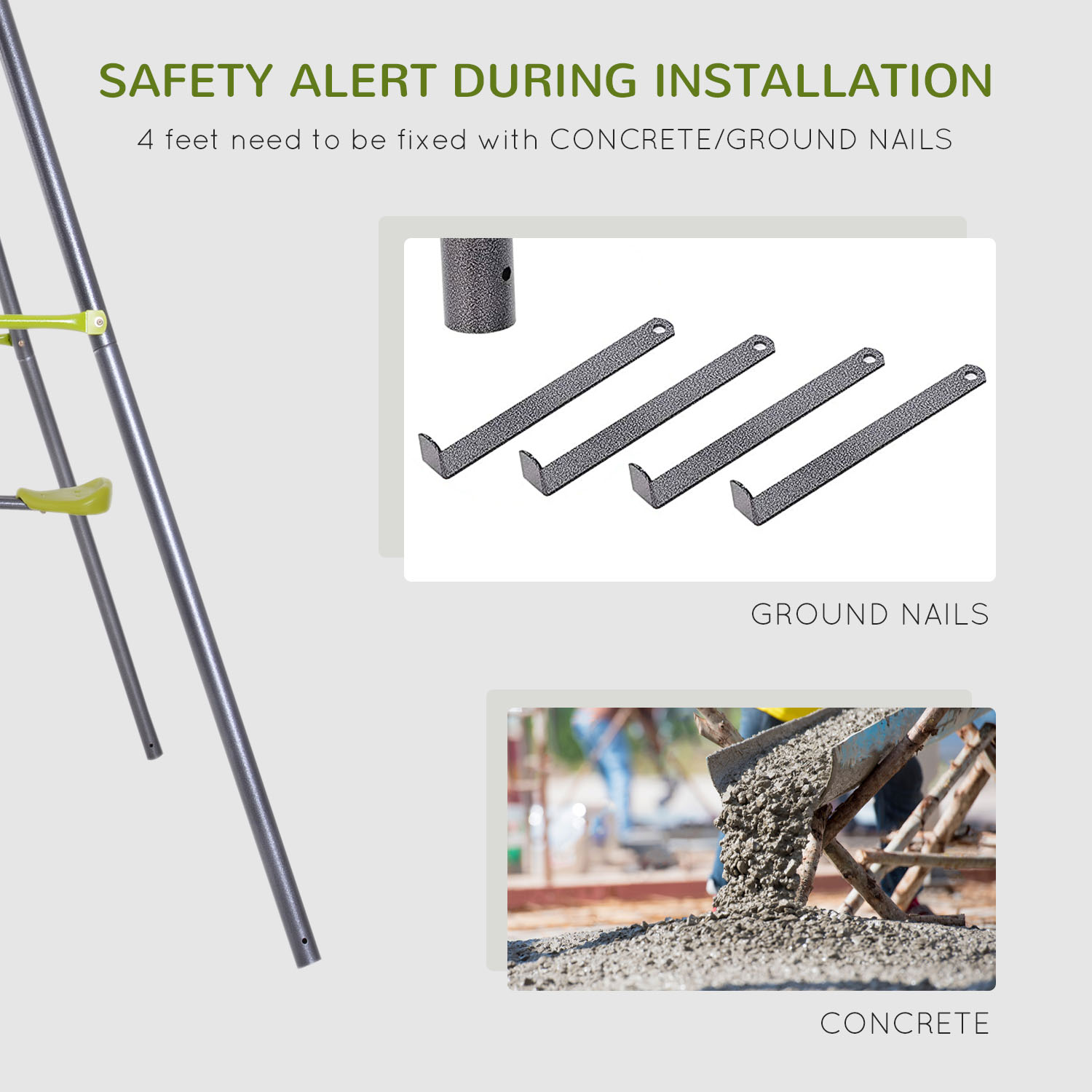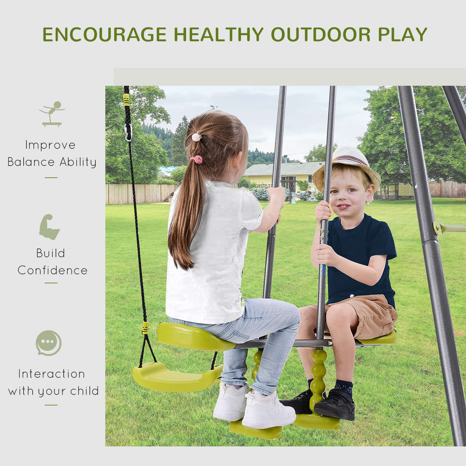 - Safe & Stable: Designed with safety and stability in mind. It is made from metal pipes and features an A-shaped structure that ensures stability and eliminates any possibility of shaking while in use. Your little ones can enjoy a happy and secure swinging experience with this reliable toddler swing set.