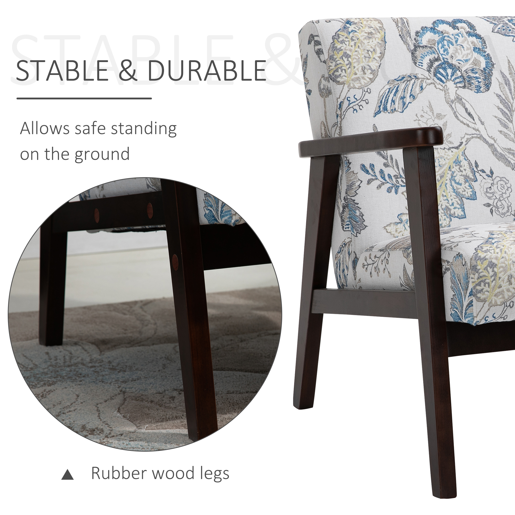 HOMCOM Mid-Century Modern Accent Chair: Retro Fabric Armchair with Wooden Arms, Linen Upholstered Lounge Living Room | Aosom Canada