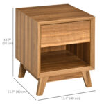 HOMCOM Modern Bedside Table Nightstand, Living Room End Table, Side Table with Drawer and Shelf, Walnut Brown | Aosom Canada