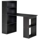 HOMCOM Modern Compact Computer Desk: 6-Tier Storage Shelves, Writing Table Workstation, Bookshelf, Home Office, Black | Aosom Canada