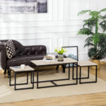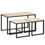 Homcom Natural Nesting Coffee Tables: Contemporary Set of 3 with Black Metal Frame for Stylish Living Room | Aosom Canada