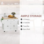 HOMCOM Pristine Pantry: Kitchen Island Trolley Cart Rolling Storage with Rubber Wood Top, Spice Rack, Towel Rack, White Finish | Aosom Canada