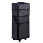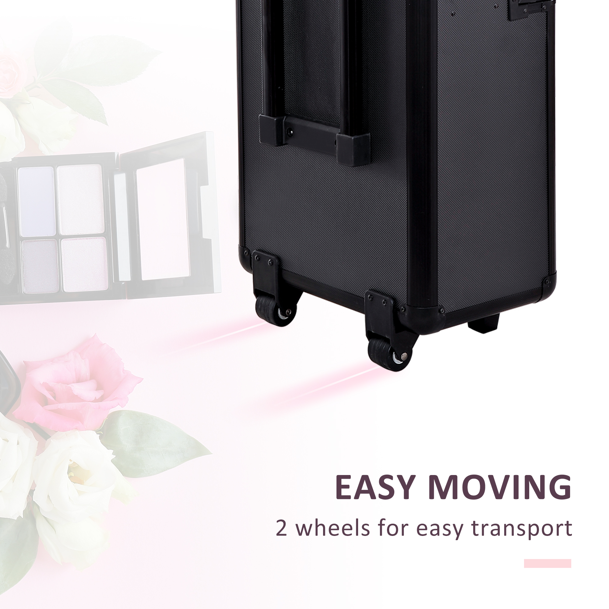 HOMCOM Pro 3 in 1 Portable Aluminum Makeup Train Cases Rolling Cosmetic Organizer Box Black | Aosom Canada