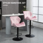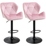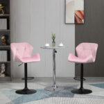 HOMCOM Set of 2 Adjustable Bar Stools Velvet-Touch Fabric Swivel Seat Armless Counter Height Chairs Pink | Aosom Canada