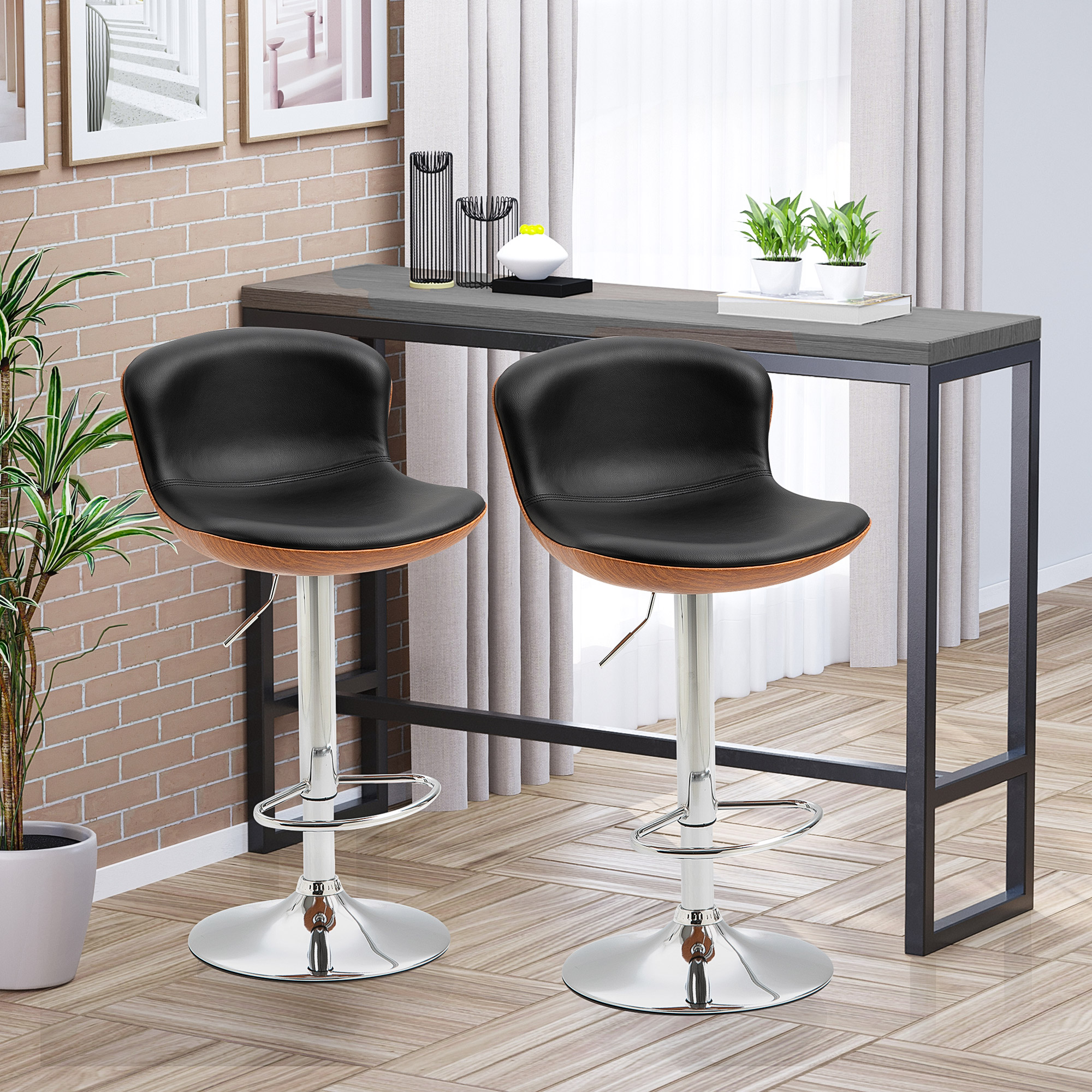 - Unique Design: Including 2 bar stools for kitchen island, each features a curved seat, sleek lines, and a combination of wood grain and PU leather, giving a blend of classic and modern styles to fit well in your living room, kitchen, home office, or dining room.