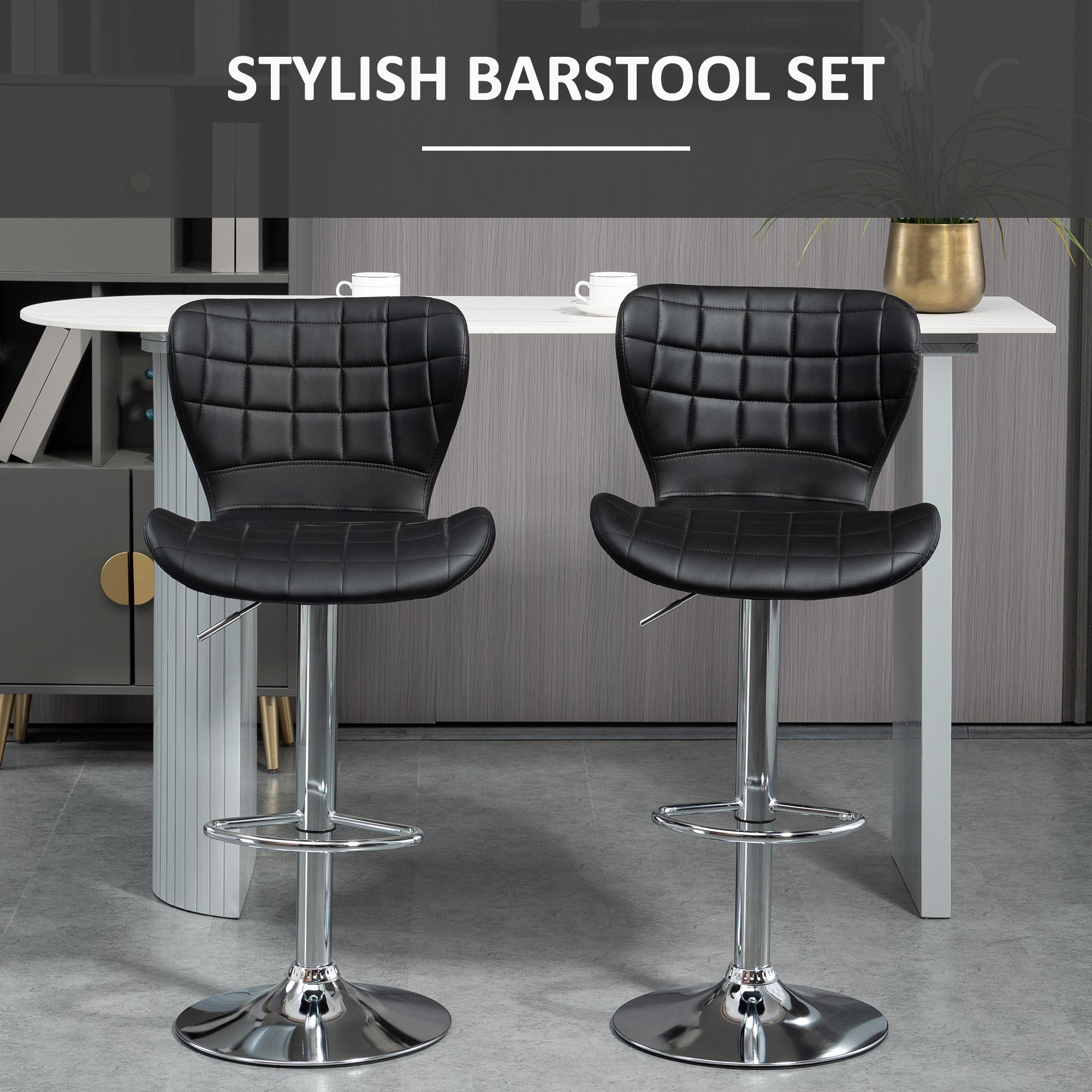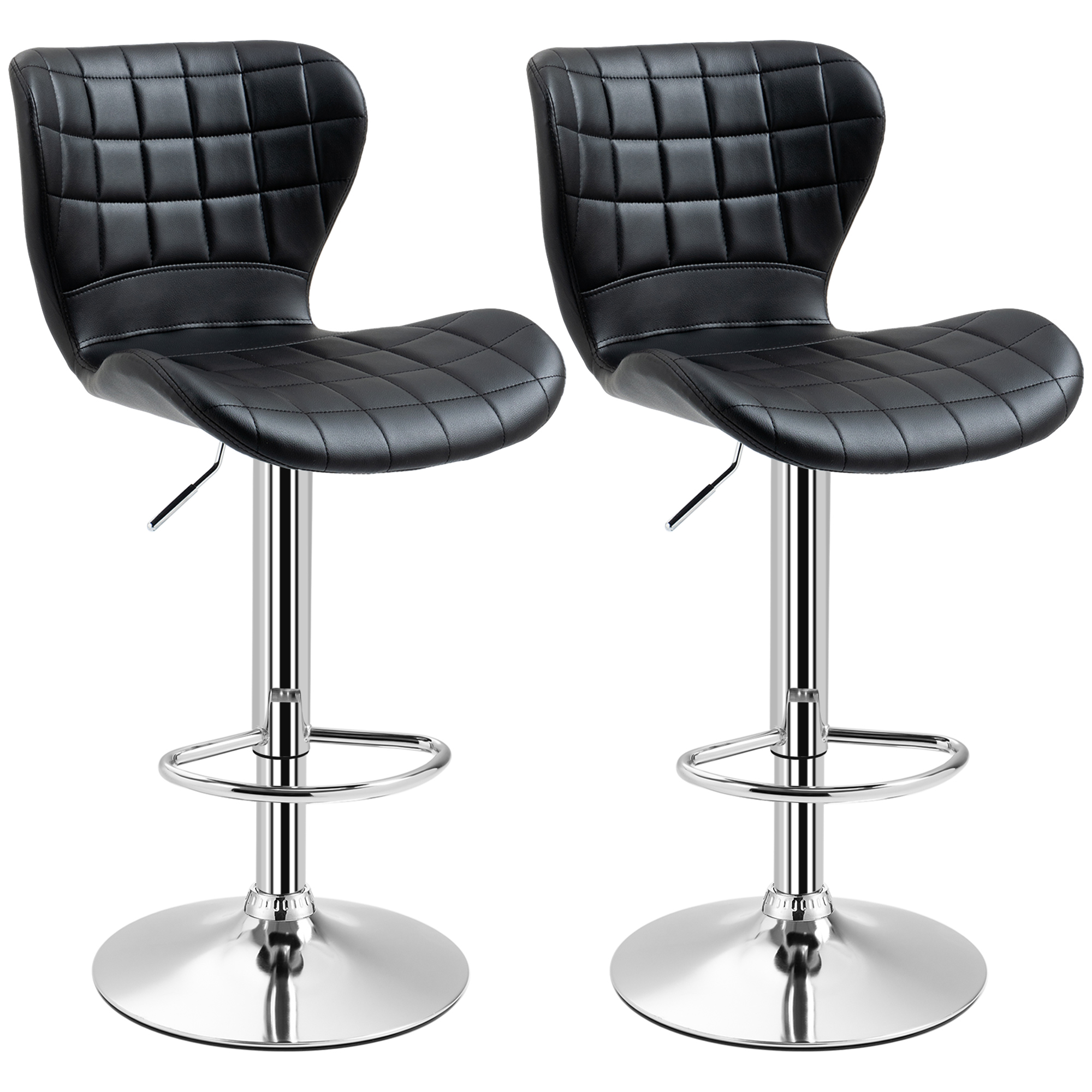 HOMCOM Set of 2 Counter Height Bar Stools Swivel Stool Height Adjustable Bar Chairs with Footrest for Kitchen Dining Home Pub, Black | Aosom Canada