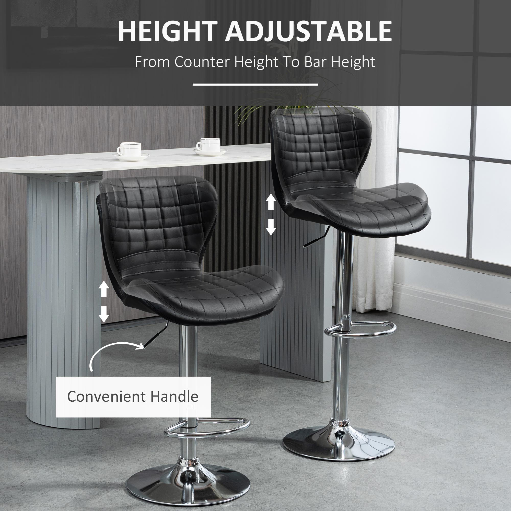 • Excellent Comfort: Thick padding covered with cool PU leather delivers exceptional comfort. Curved backrest and seat with lower footrest of the island stools help in keeping a relaxed body posture and reducing fatigue. Smooth faux leather is water protection and easy to wipe clean.