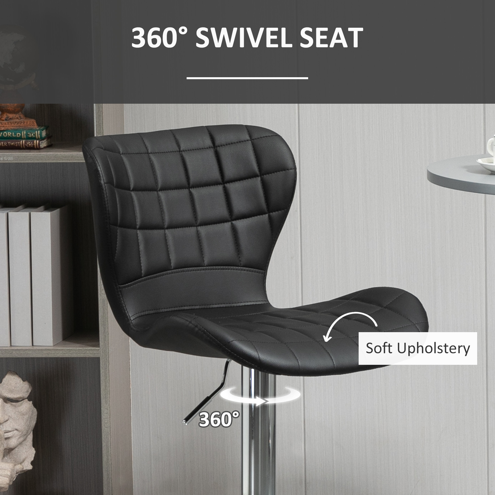 • Adjustable Stool: The seat height of these kitchen stools can be adjusted from 23.2″ to 31.9″ to fit table from counter to bar height. 360° swivel seat allows you can turn to your friends without getting up.